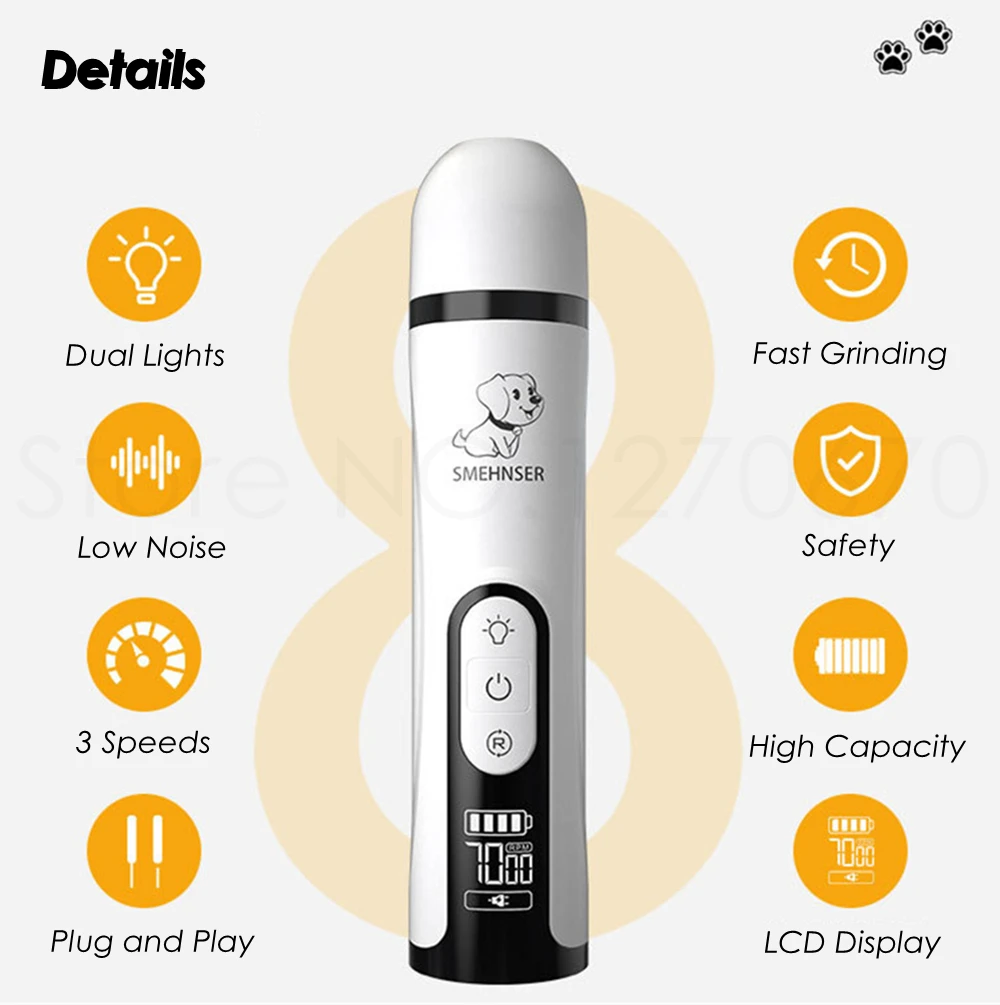 M5 Elektromos Kutya Körömvágók Professzionális 9000 Fordulat / Perc Kutya Köröm Ginder Led Világos Csendes Macskákkal, Köröm Ápolás
