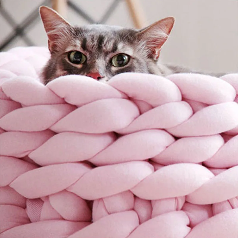 Macska Ágy Háziállat Ház Divat Szőtt Gyapjú Pamut Macska Barlang Kosár Lusta Lounger Puha Kennel Kutya Alvás Kanapé Mosható Kedvtelésből Tartott Kisállat -Ellátás