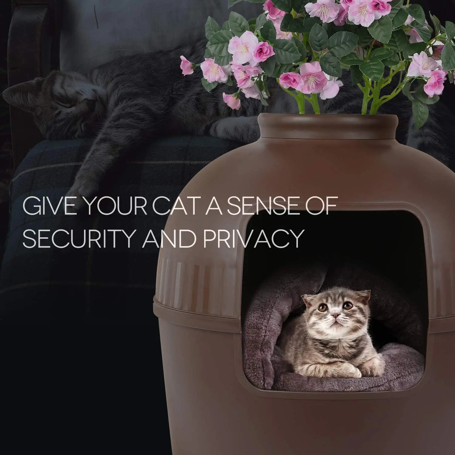 Macska Alom Doboz, Mint Macskaház Bútorok Vagy Fedett Macska Alom Doboz Növényi Rejtett Alomdoboz Multi-Macskához