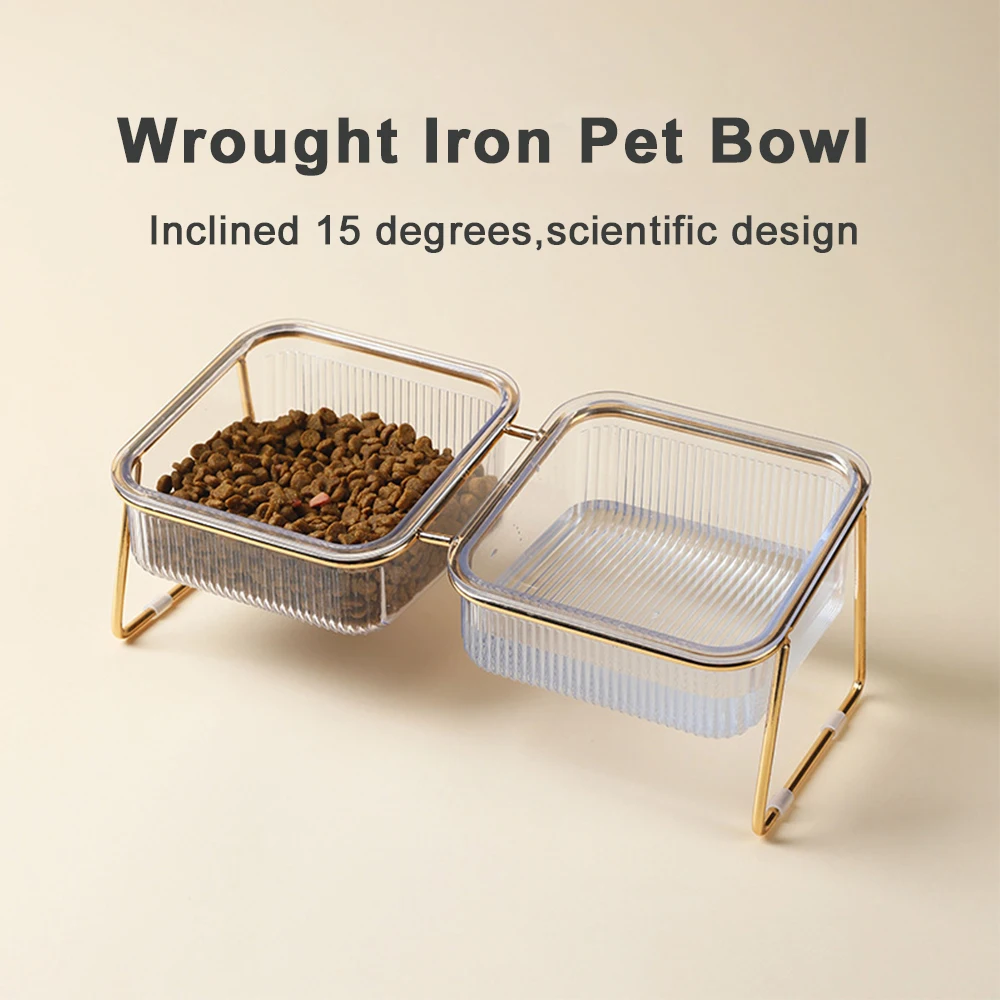 Macska Kettős Tál Nem Csúszás Háziállat-Etetés Cica Macskavi Etető Tálak Macskák Védelme Méhnyak Átlátszó Kisállat Tálak Állványtal