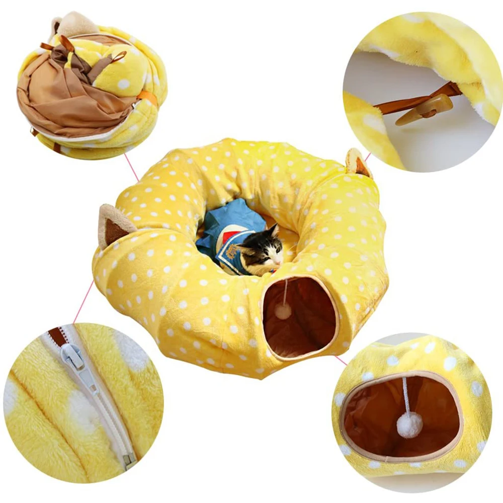 Macska Kutya Alagút Ágy Szőnyeg Összecsukható Macskacső Játékkal Peek Lyuk Szórakoztató Golyó Beltéri Kültéri Interaktív Rejtekhely Gyakorlása Játékok