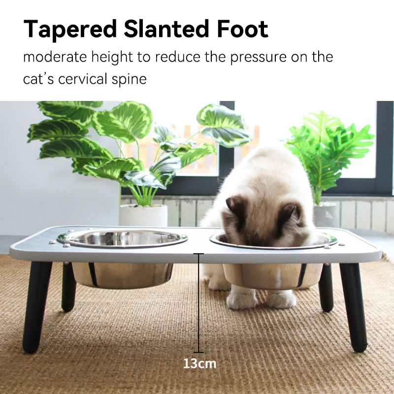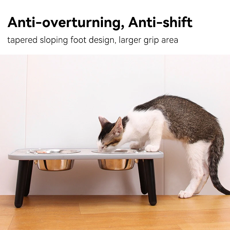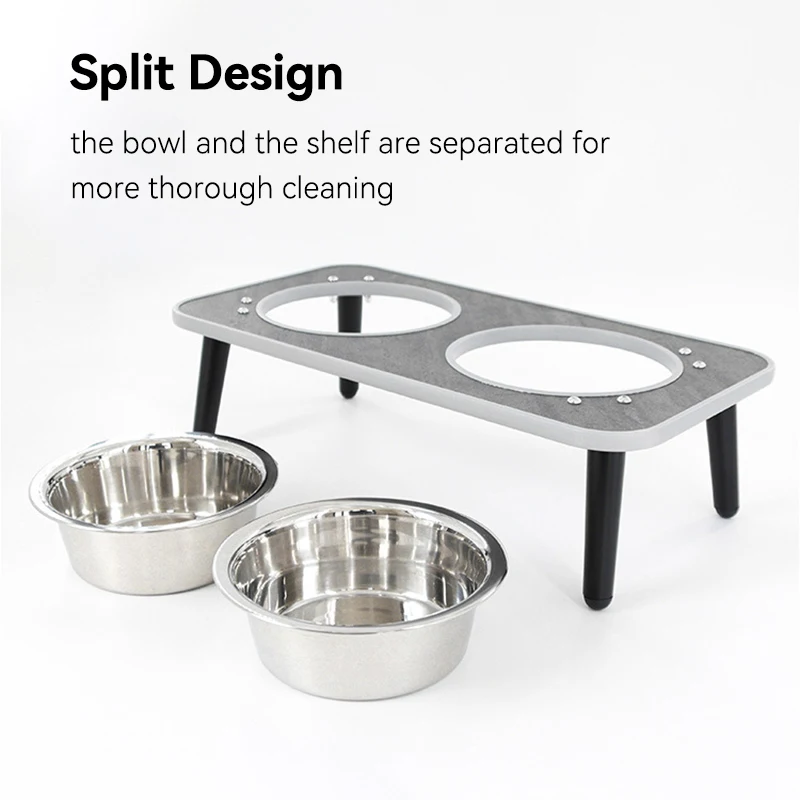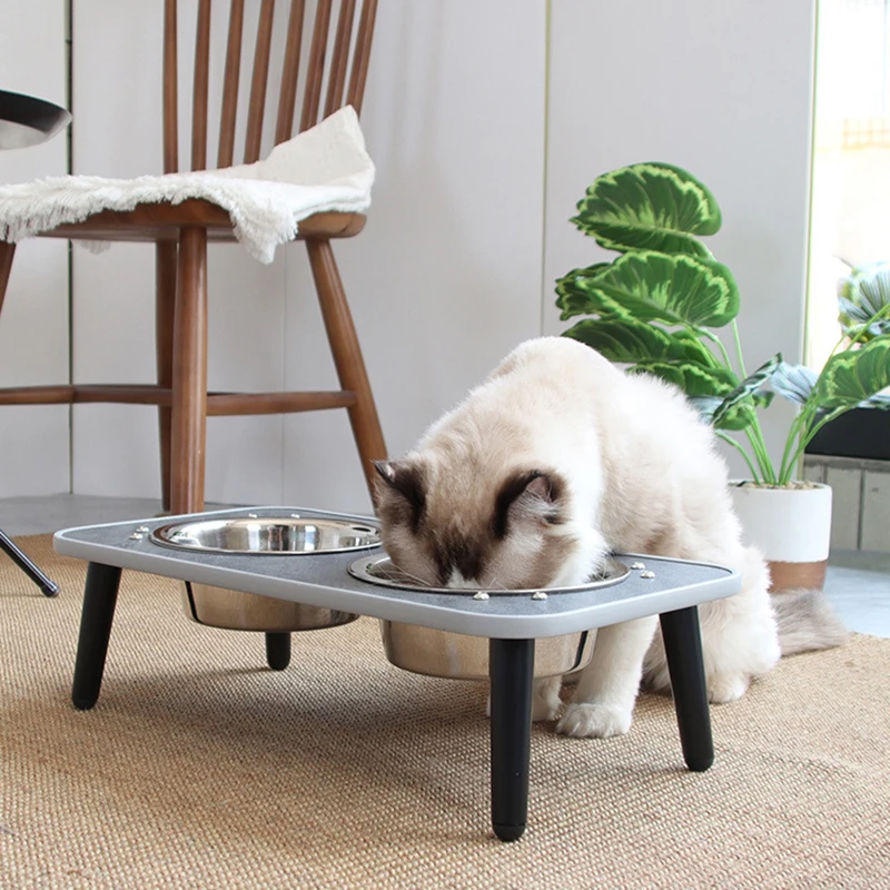 Macska Rozsdamentes Acél Tál Kis Kutyák Dupla Víz Ételek Háziállat Magas Lábú Etető Adagolók Állvány Kölyökkutyával