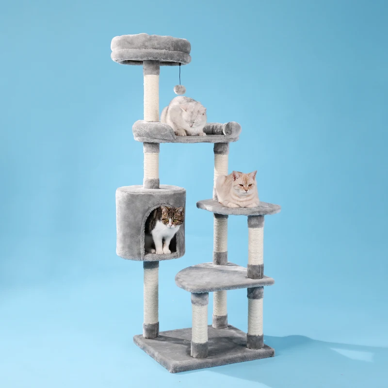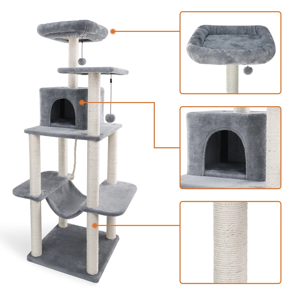 Macskafa Modern Macska Fa Torony, Amely 2 Szuper Nagy Társasház Erős Karcoló Oszlopokat És Puha Sügéreket Tartalmaz