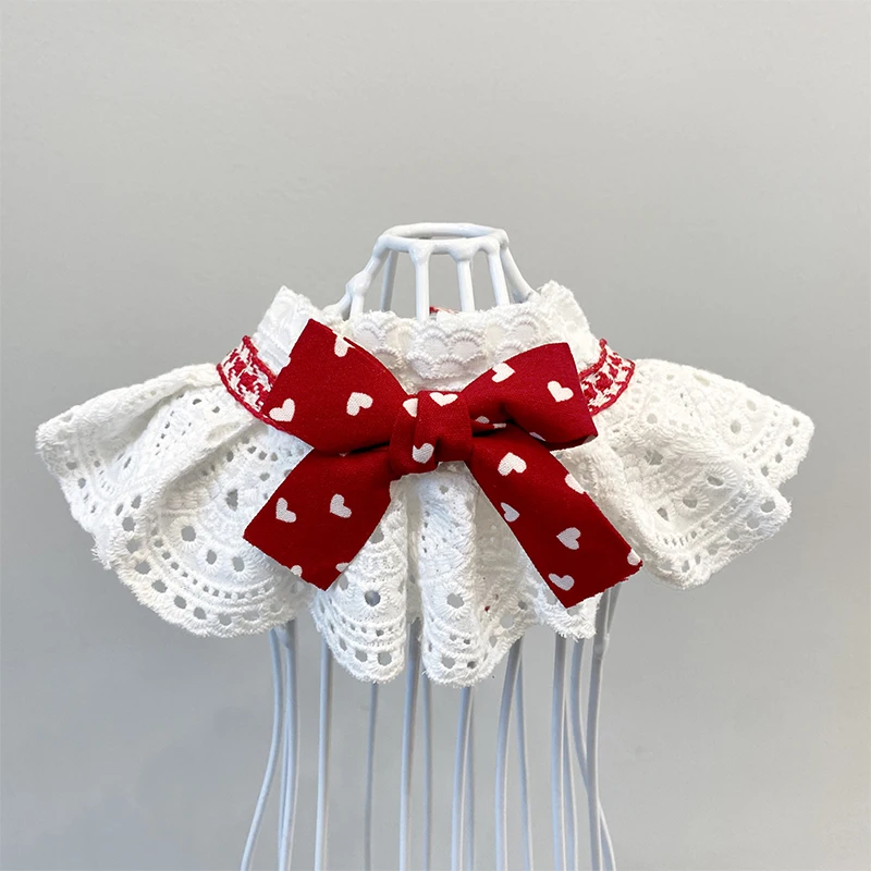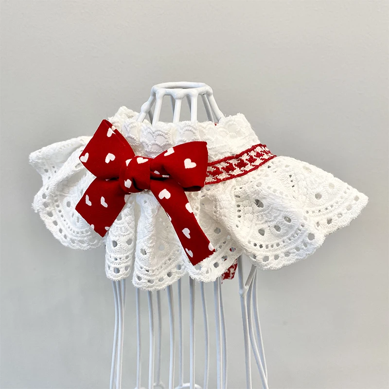 Macskás Kutya Piros Szív Bandana Vállpántos Gallér Csipke Nyak Sál Báb Brit Rövid Gatos Accesorios Kutya Kellékek