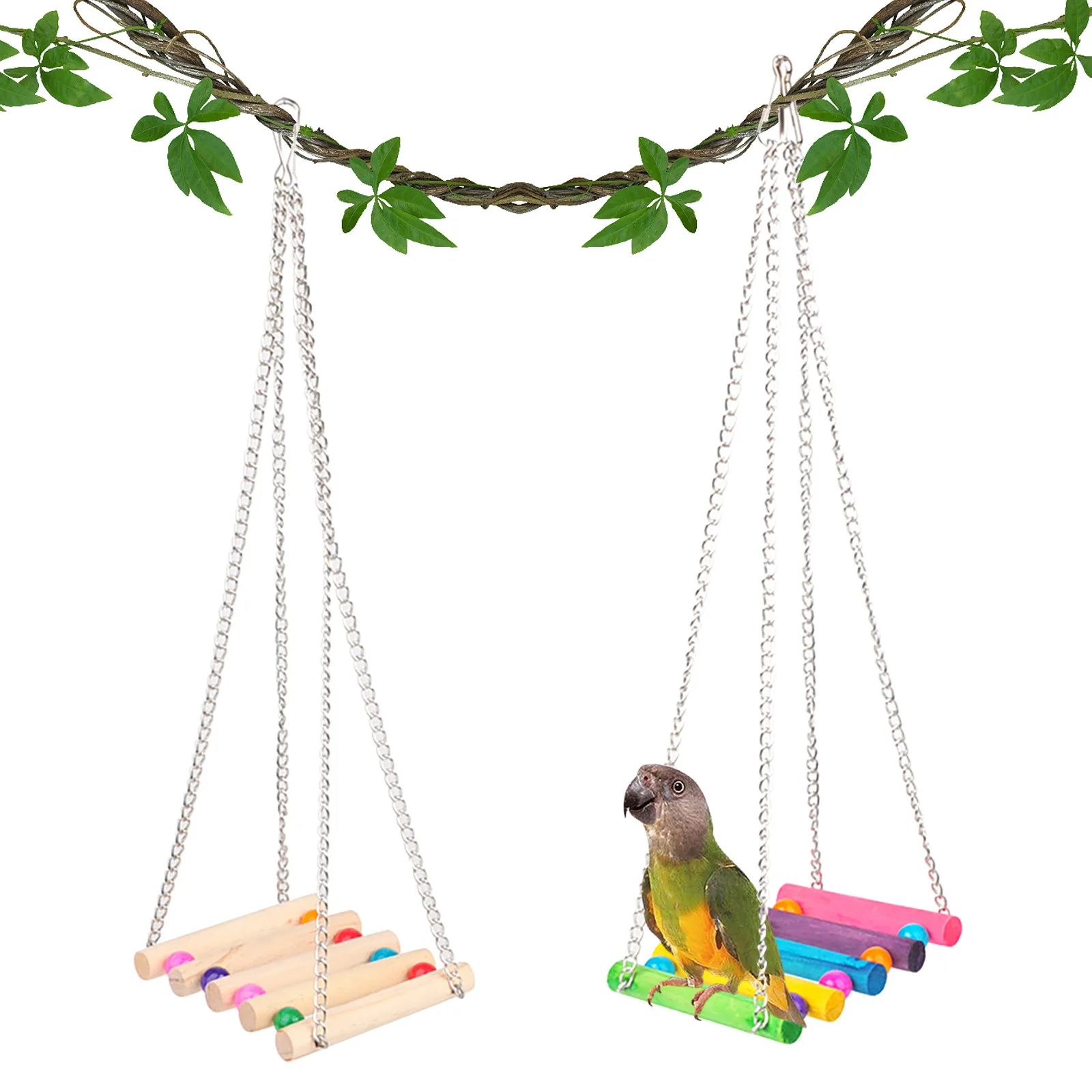 Madár Ketrecek Játékok Papagájokhoz Megbízható És Rágható – Lengő Lógó Rágócsípés Híd Fa Gyöngyök Golyó Csengő Játékok Madarak Játék Kisállat