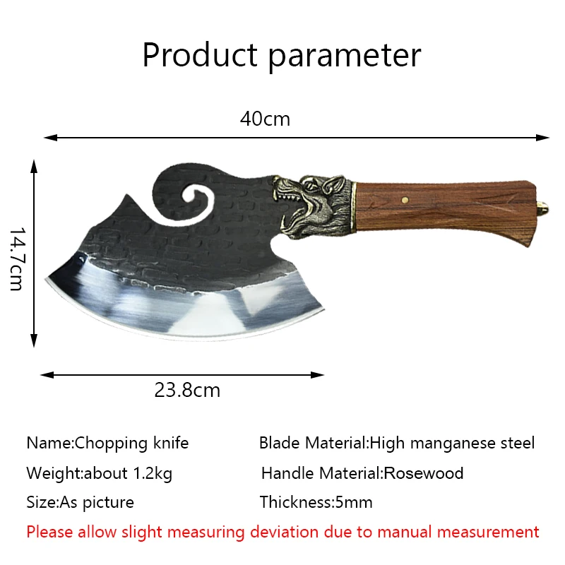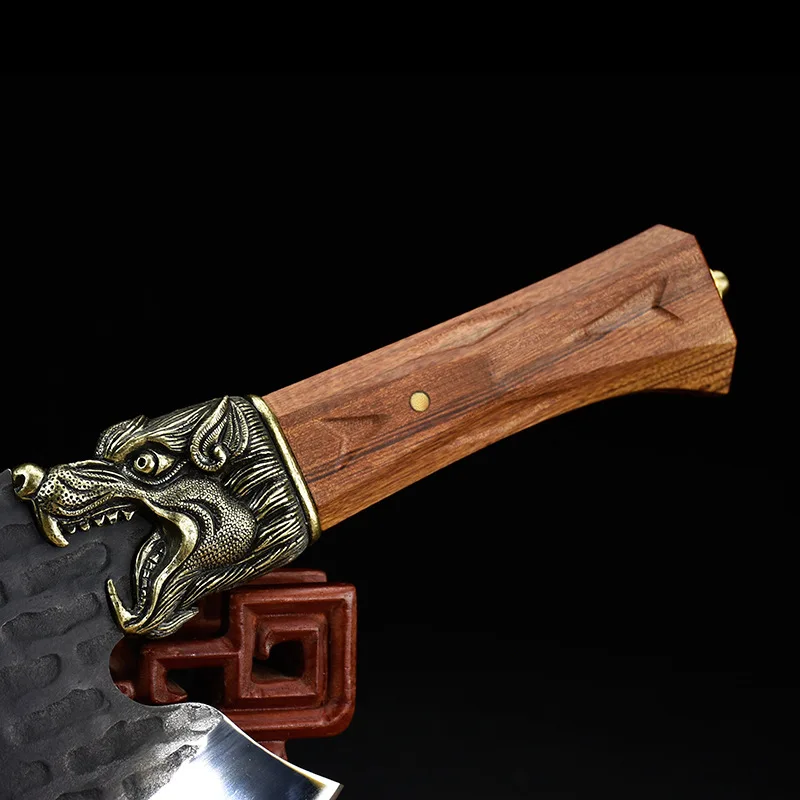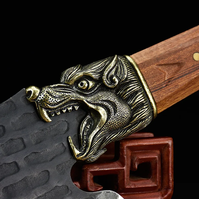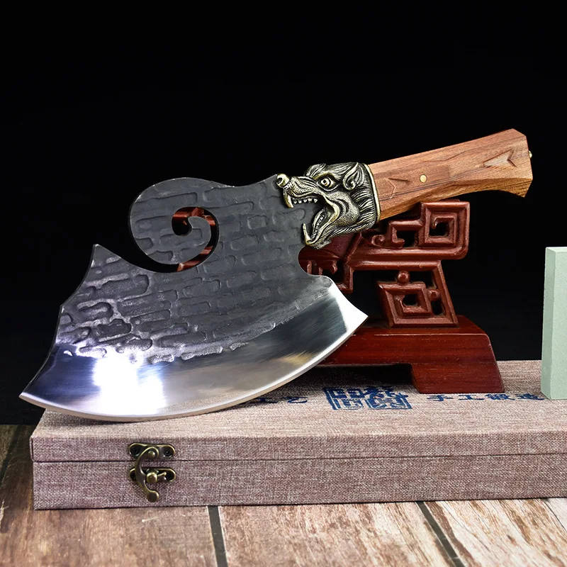 Magas Mangán Acél Csont Darabolás Kés Kovácsolt Kínai Konyhai Sárkány Szobor Nehéz Vágóhús Fejsze