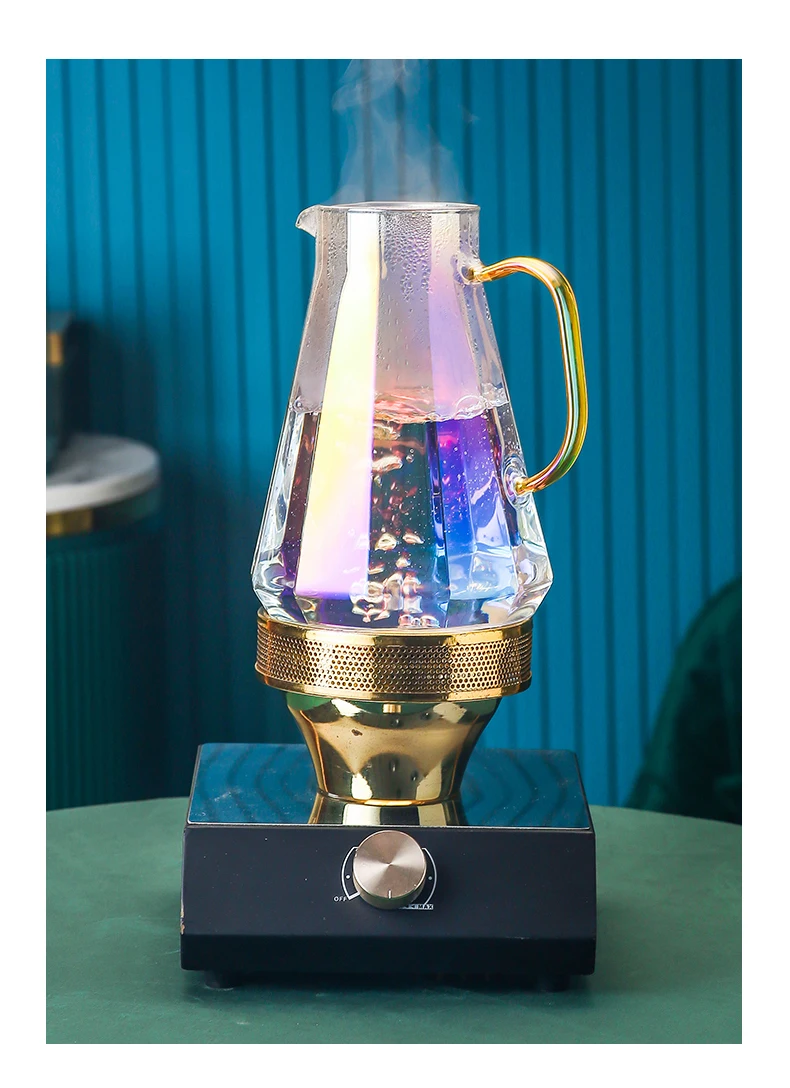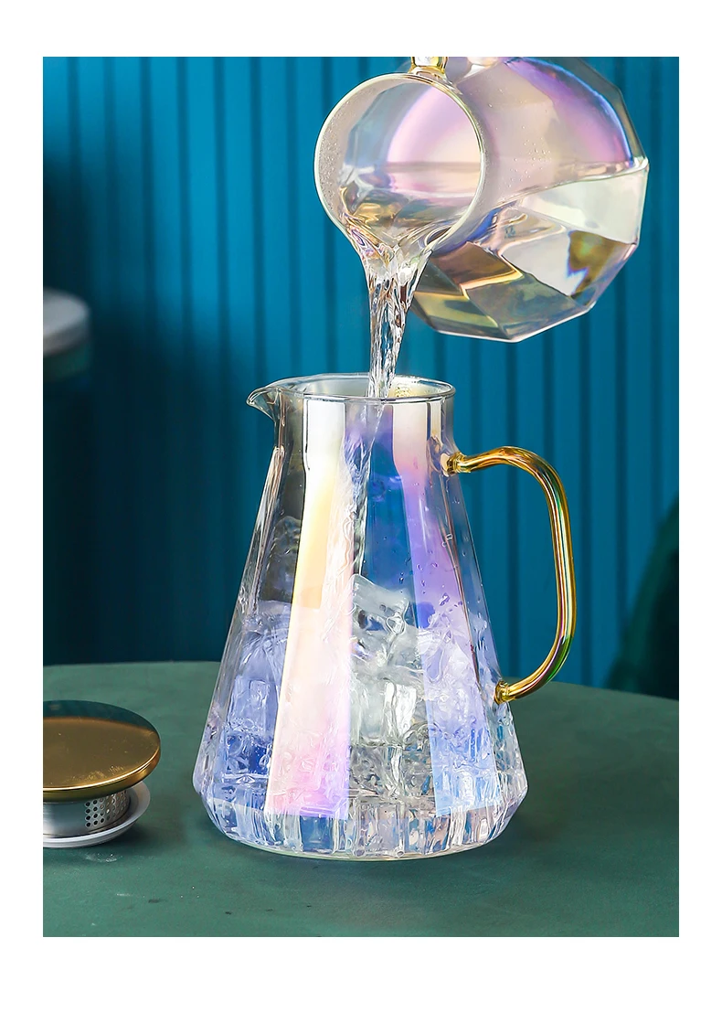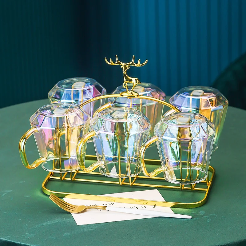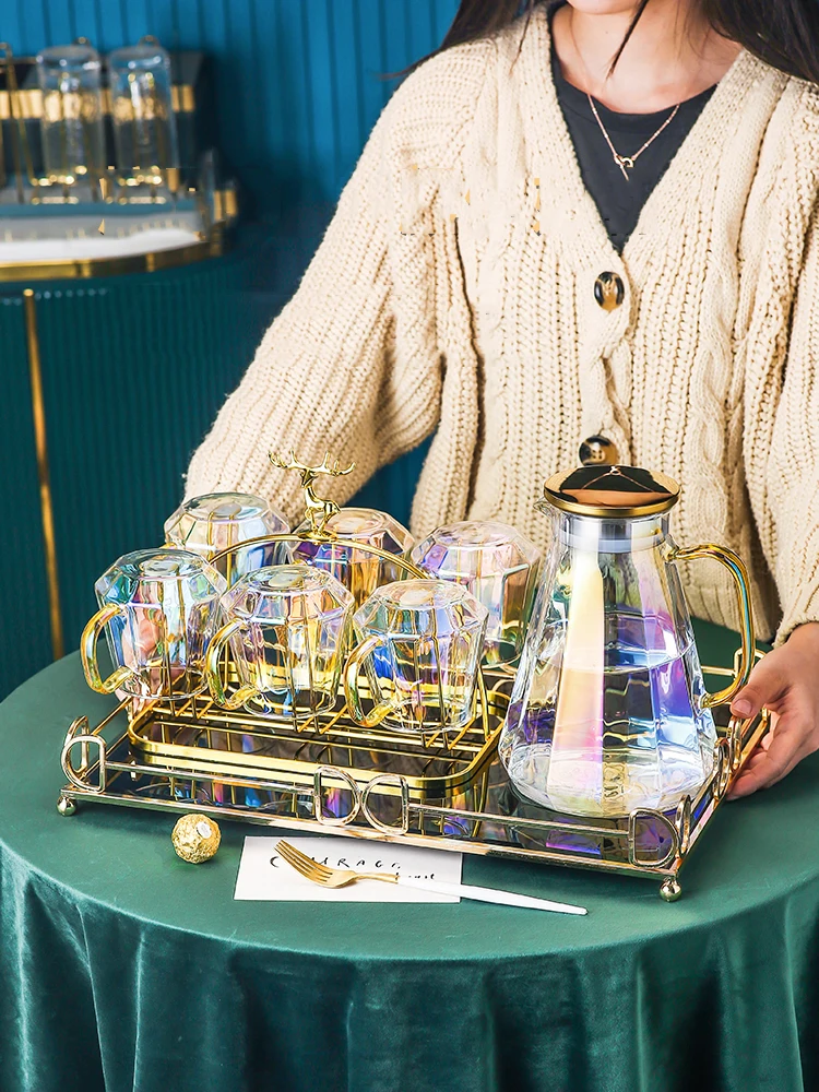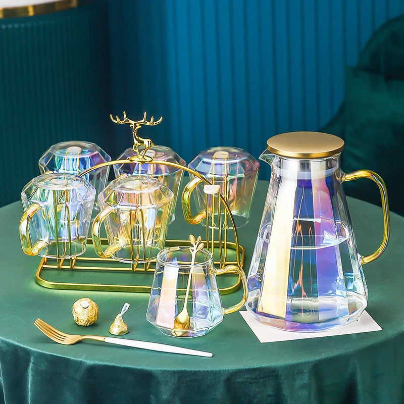 Magas Megjelenésű Üveg Teakészlet Álmodozó Lila Vízi Tea Csészék 1,9 Literes Teáskanna Rozsdamentes Acél Szarvas Tartó Gyönyörű Tálca Nyári Ital