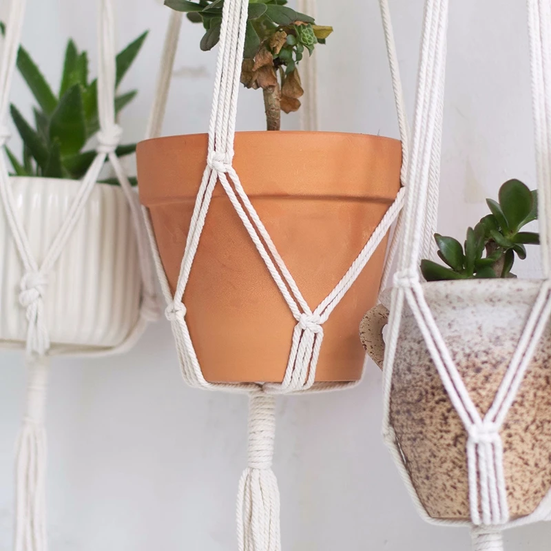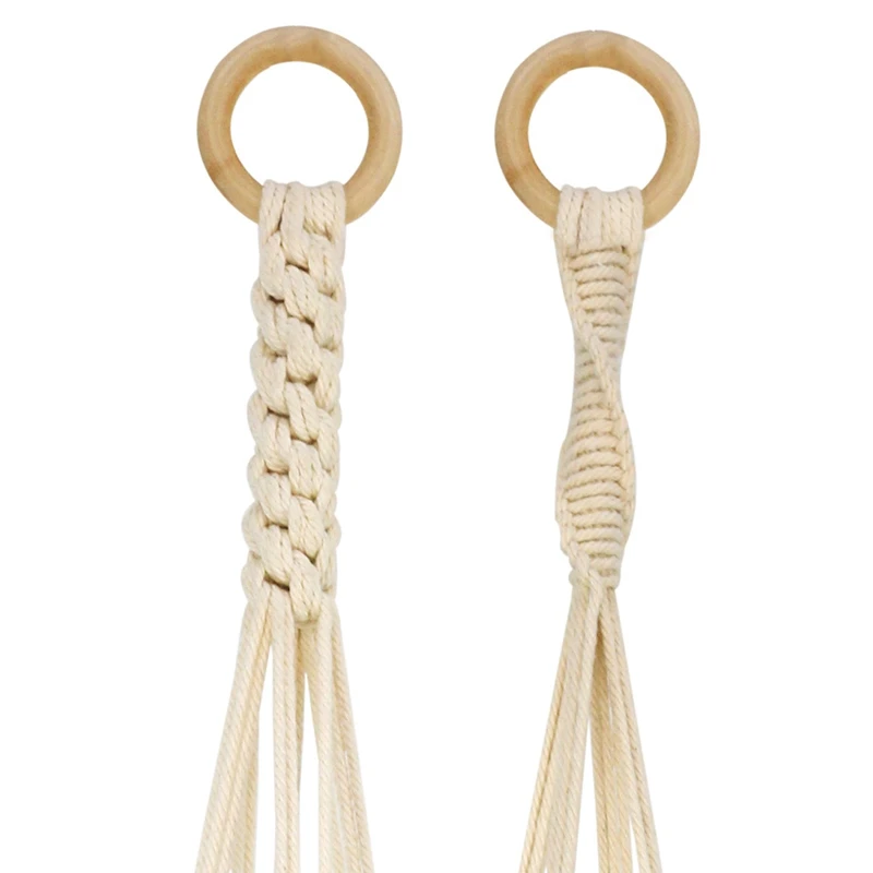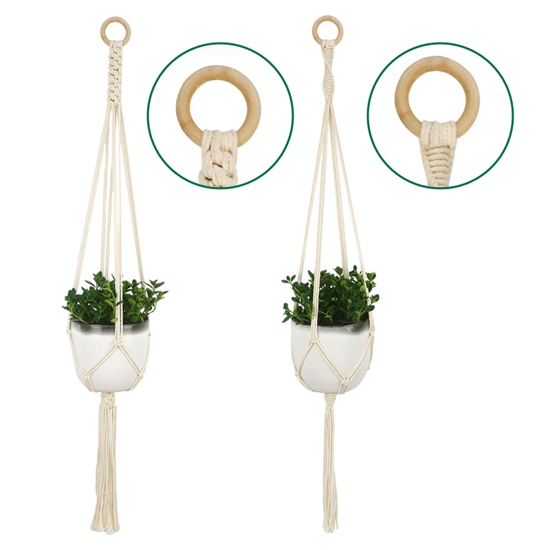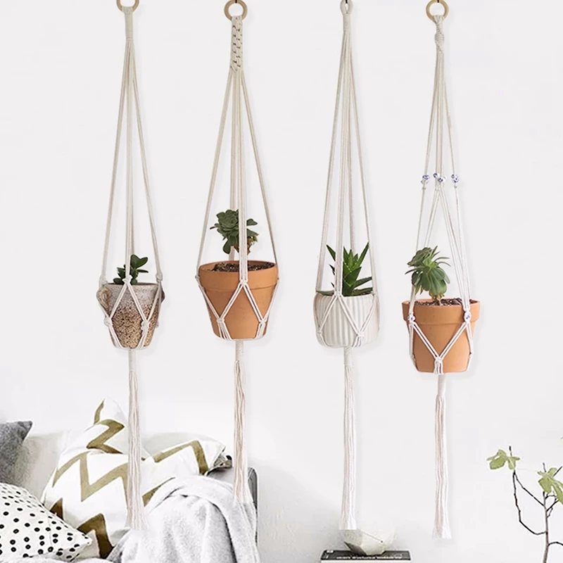 Makrame Függő Kosár Kézzel Szőtt Virágcserép -Vintage Növényi Polcok Pamut Kötél Fedett Fogas Kerti Dekoráció