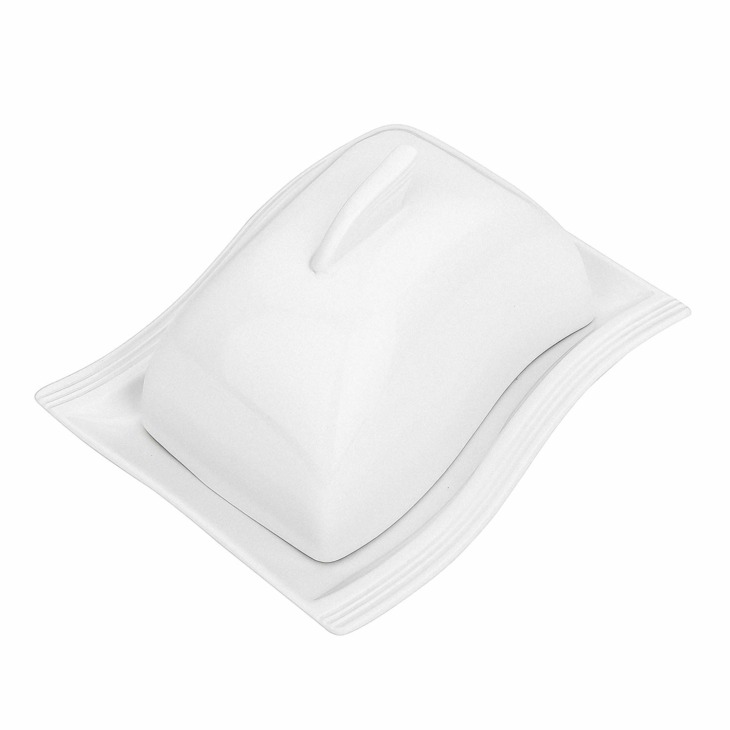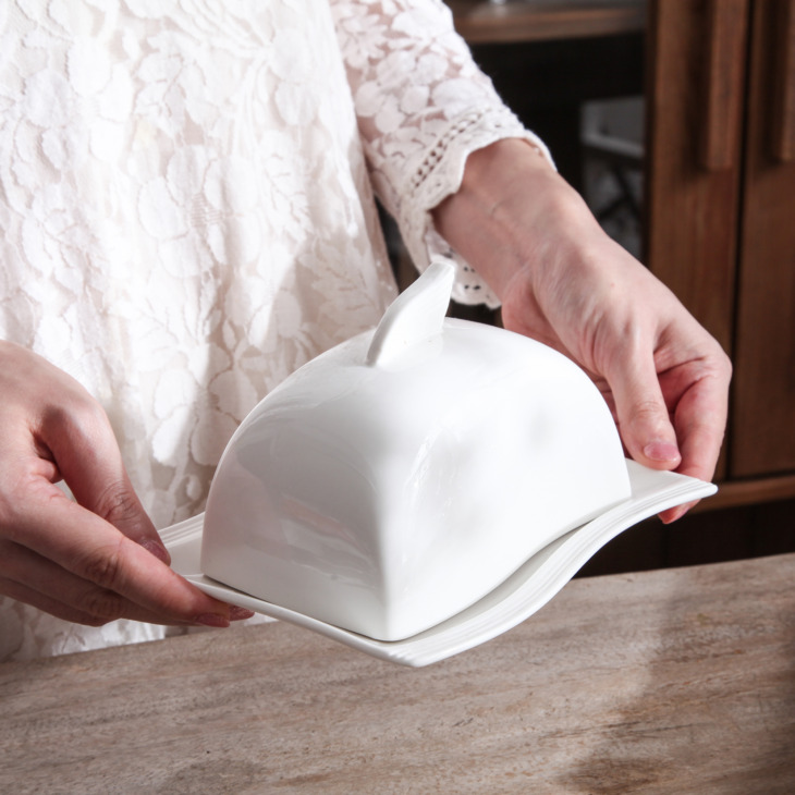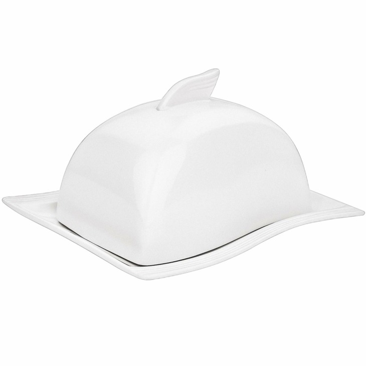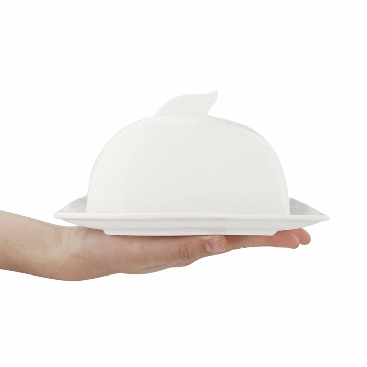 Malacasa Flora 6.75 „Elefántcsont Fehér Vaj Edény Porcelán Vajtartály Gyümölcs Ételek Elszigetelő Étkező Tányér Fedéllel (17 * 14 * 10)
