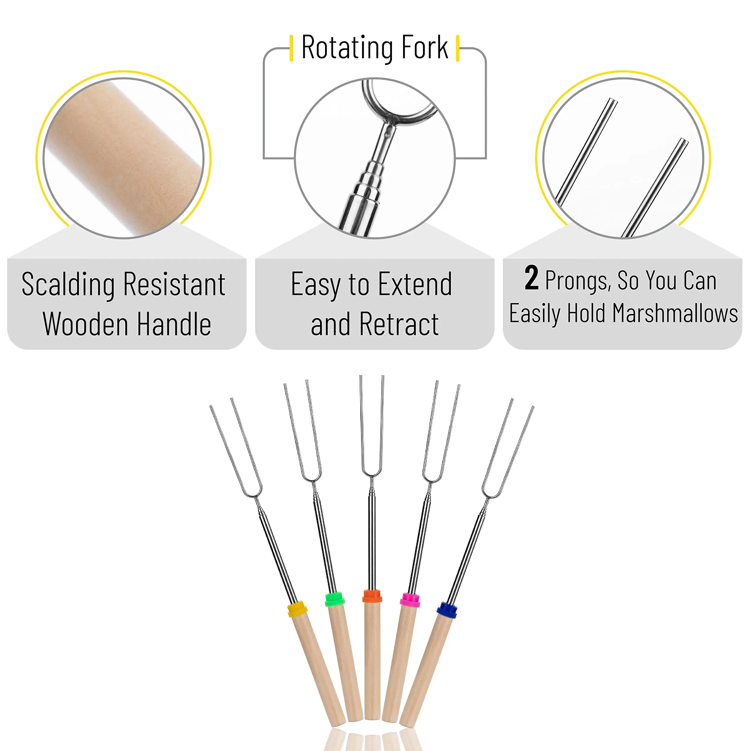 Marshmallow Pörkölt Botok, 32 ”, Kiterjeszthető Rozsdamentes Acél A Smores Botokhoz, Tábortűzhez, Pillecukor Hot Doghoz