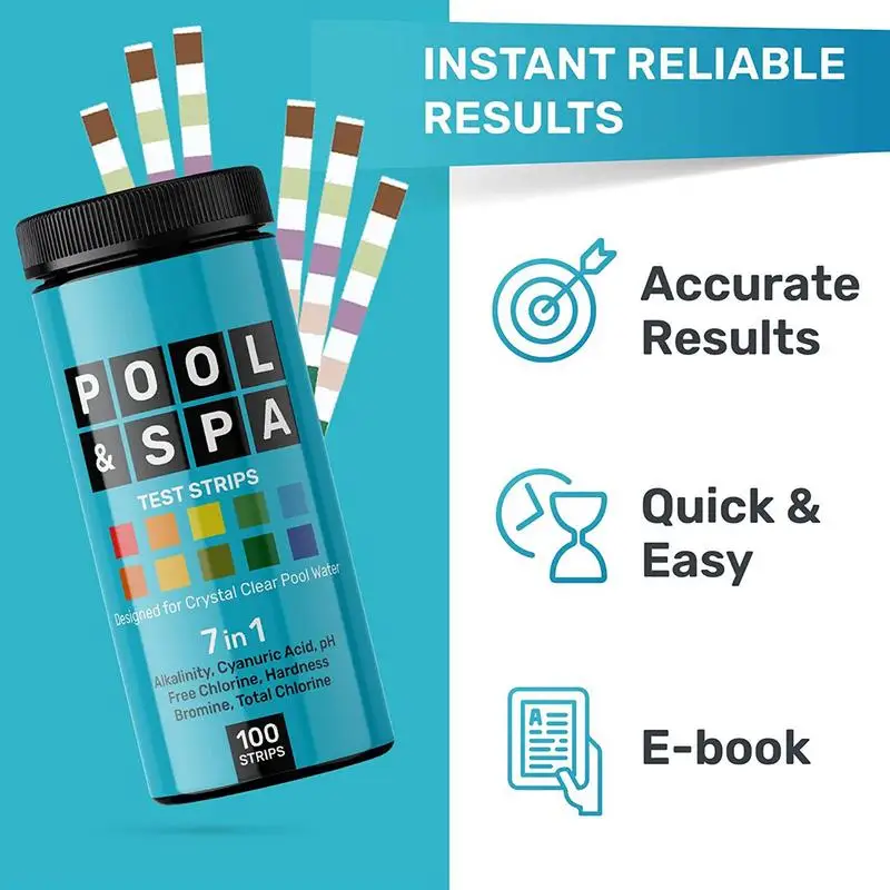 Medence Tesztkészlet Gyógyfürdő -Csíkok Készlet Pezsgőfürdő 100 Csík Vízkeménységi Nagy Pontosságú Ph Tesztelő Klór Só -Ja
