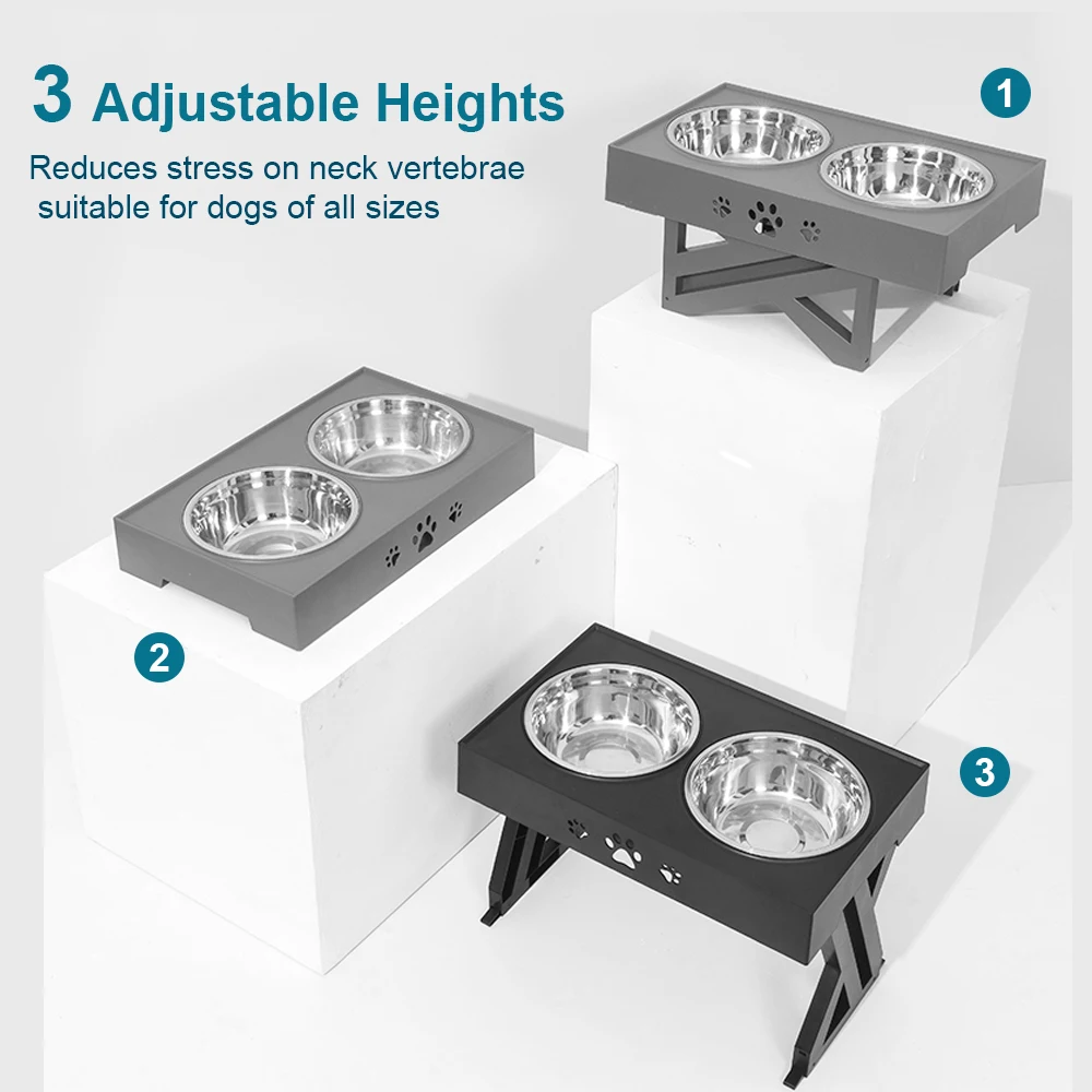 Megemelt Állítható Kutya Dupla Tál Rozsdamentes Acél Nem Csúszás Kutya Vízélő Étel Tál Állványteles Etető Dupla Tálak Lift Tabel