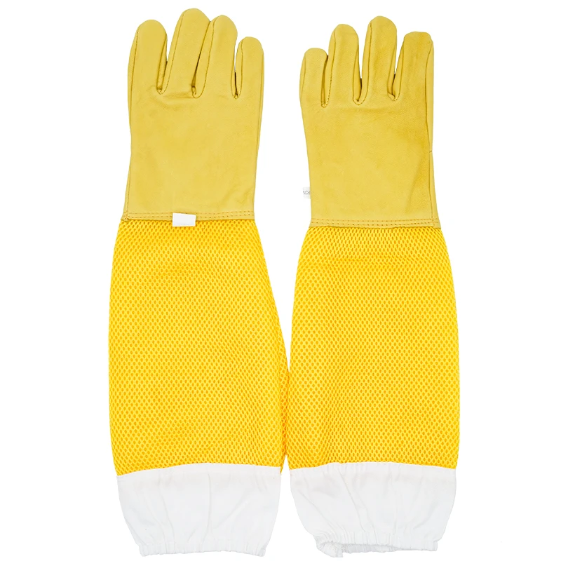 Méhészeti Védőkesztyű, Méhész Hüvelyek Lélegző Méhek Elleni Ruhával, Apikultúra Birkabőr Hosszú Sárga Hálókesztyű 1Pair