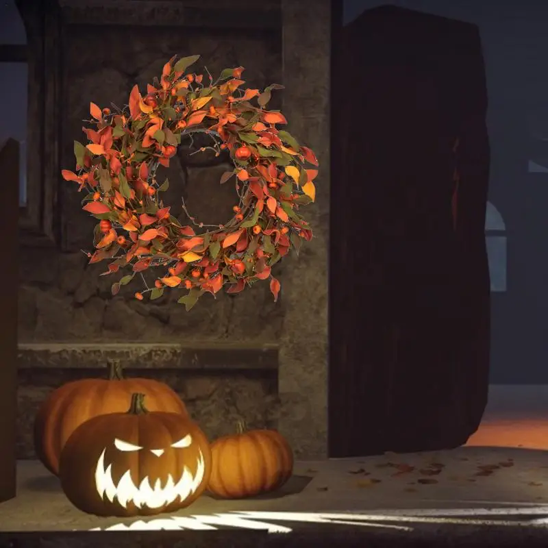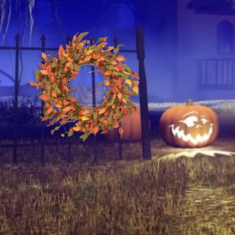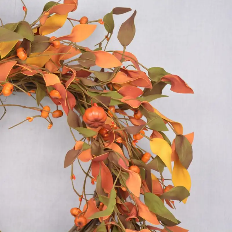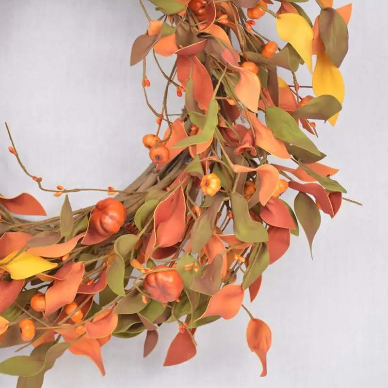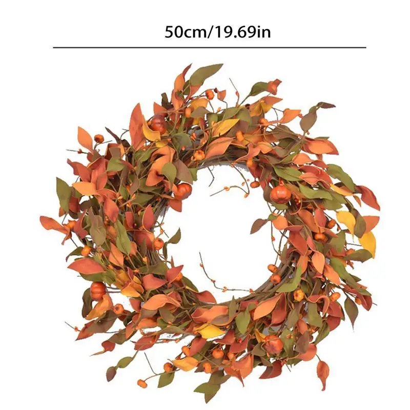 Mesterséges Betakarítási Koszorú 19.7 Hüvelykes Esési Ajtó Koszorúk Tök Levél Pinecone Hálaadás Esküvői Dekoráció