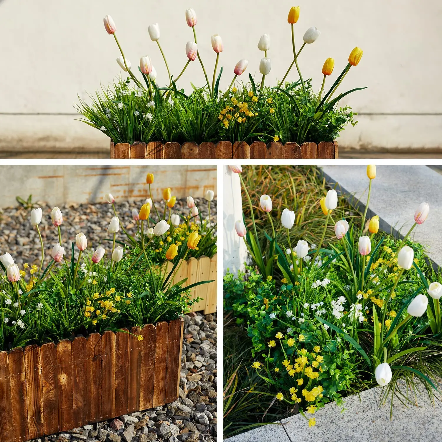 Mesterséges Tulipán Hortenzia Levendula Virágok Zöld Cserjék Hamis Növény Kültéri Kerti Teraszhoz Előlap Tornác Udvar Dekoráció