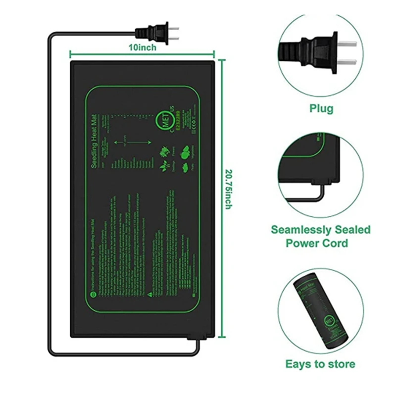 Met Tanúsított Palánták Hőszőnyeg Vízálló Tartós Hőszőnyegek Csírázó Állomás Hő Szőnyeg Meleg Hidroponikus Fűtőpad Amerikai Dugó