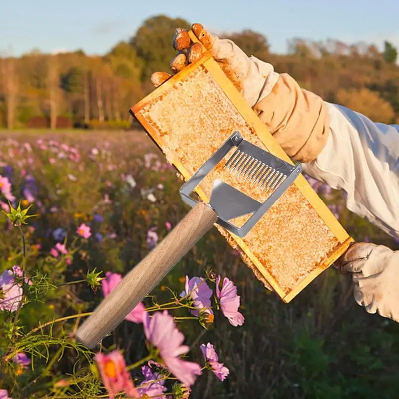 Mézes Villa Rozsdamentes Acél Méheszerékek Méhsejt Késsel Uncapper Méhész Tine Hive Scraper Tool Wooden