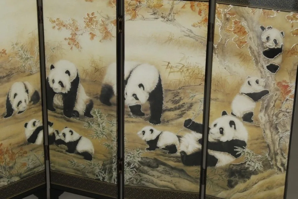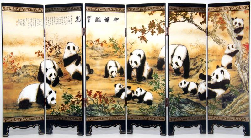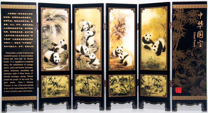 (Mini) Kínai Klasszikus Lakkfestés Összecsukható Képernyő – Aranyos Pandák.