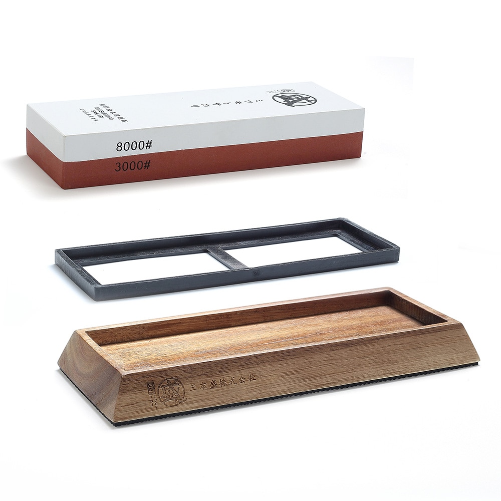 Mitsumoto Sakari 1000 3000 8000 10000 Grit Japon Çift Taraflı Bileme Taşı Bıçaklar Için Kaymaz Kauçuk Ile Ve Ahşap Taban