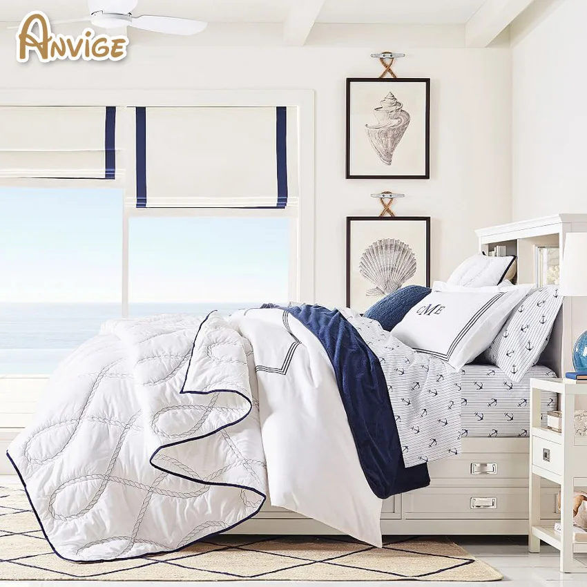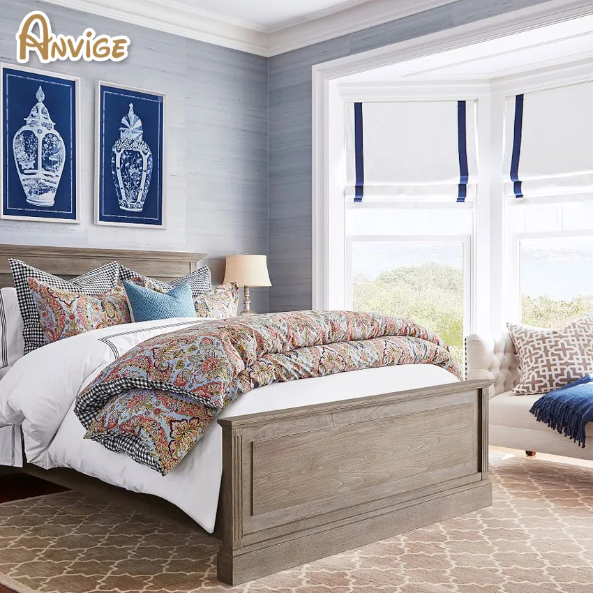 Modern Fehér És Sötétkék Csíkos Lapos Római Árnyalatok Testreszabott Redőnyök