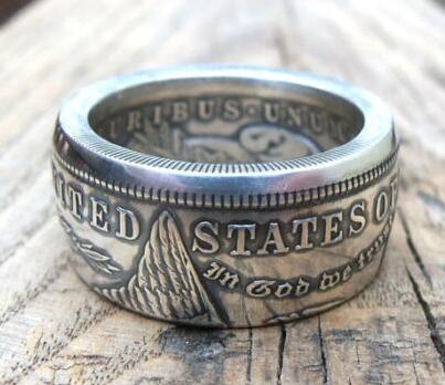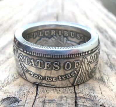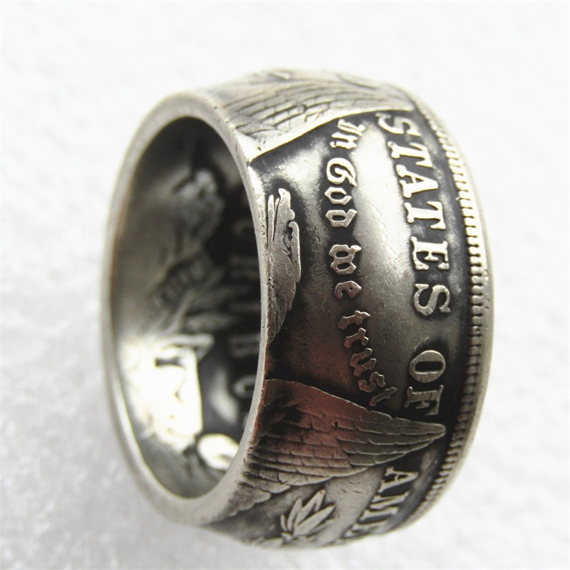 Morgan Ezüst Dolláros Érme Gyűrű Sas’ Ezüstözött, Kézzel Készített, Méretben 8- 16