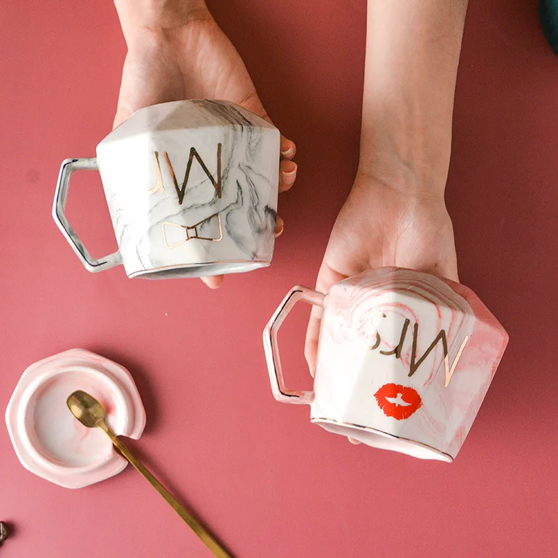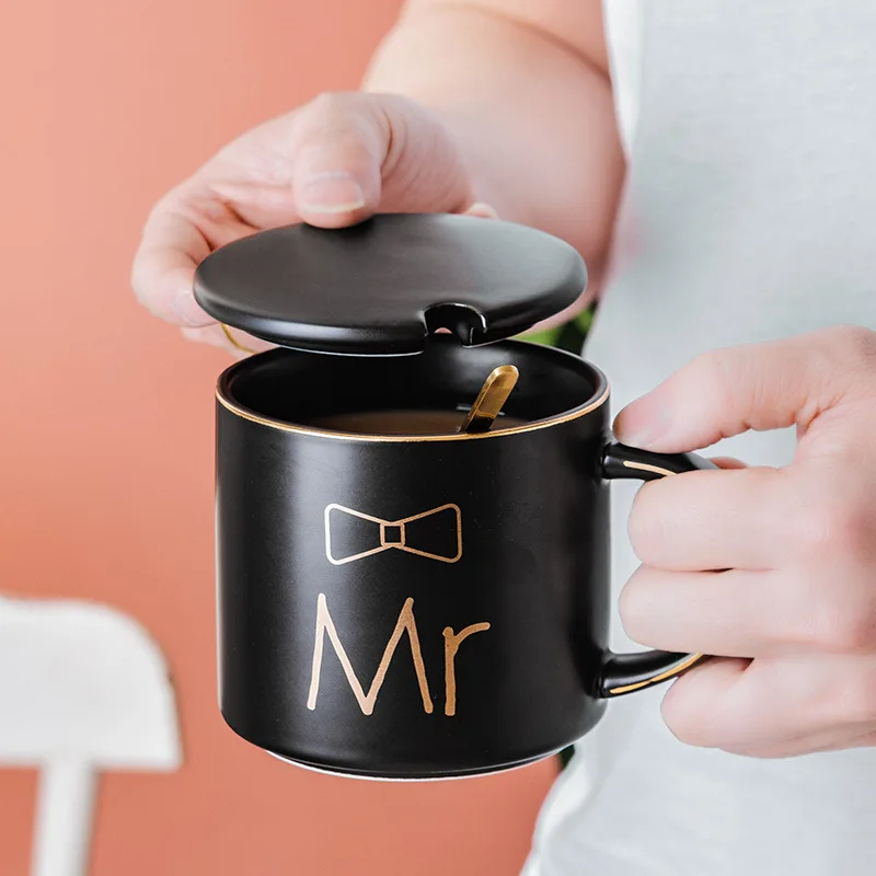 Mr. És Mrs. Coffee Bunds Cups Ajándékkészlet Az Eljegyzési Esküvői Menyasszonyi Zuhany Menyasszony És A Vőlegény Ifjú Párok Fekete Kerámia.