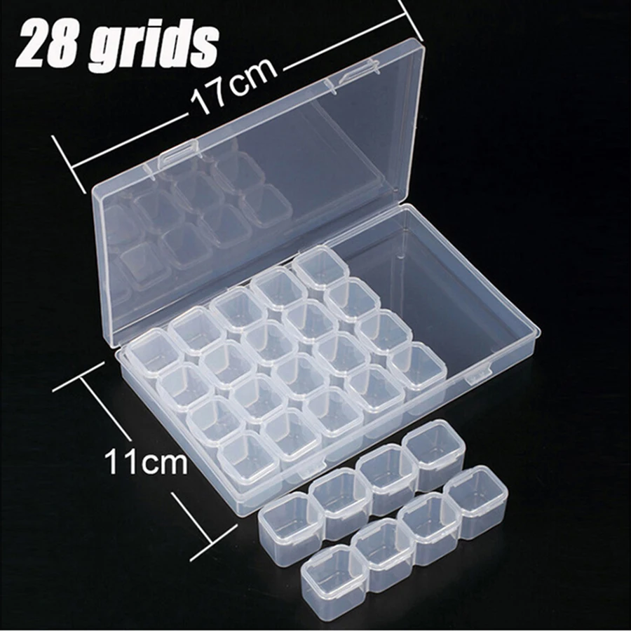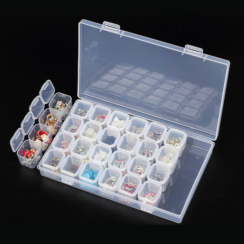 Műanyag 28 Résidők Köröm Művészeti Szerszámok Ékszertároló Doboz Tok Szervező Gyöngyök Kijelző Gyémánt Hímzés Tiszta Tároló Tartó