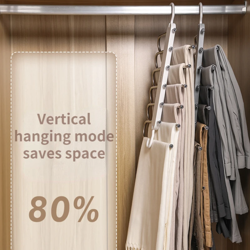 Multi-Funkciós 6 Az 1-Ben 1 Nadrág Fogas A Ruhadarabhoz Állítható Szekrény Szervező Tároló Állvány Nyakkendő Polc