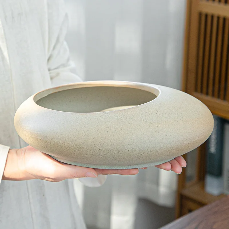 Nagy Kaliberű Kerámia Virágcserép-Növényi Mikrotiszkás Edény Növények Az Irodai Erkélyen Lélegző Virág