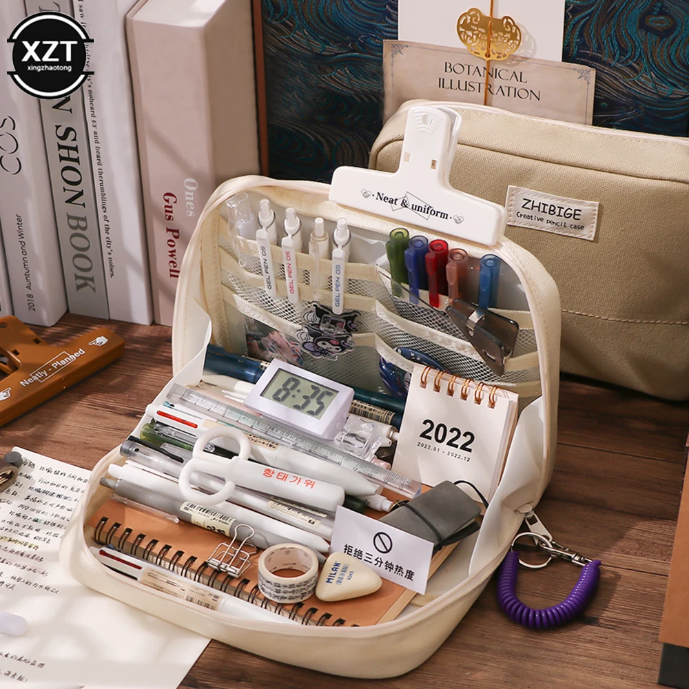Nagy Kapacitású Ceruza Tok Rózsaszín Esztétikai Iskolai Box Levélpapír -Ellátás Zsák Cipzáras Tasak Iskola Kellékek