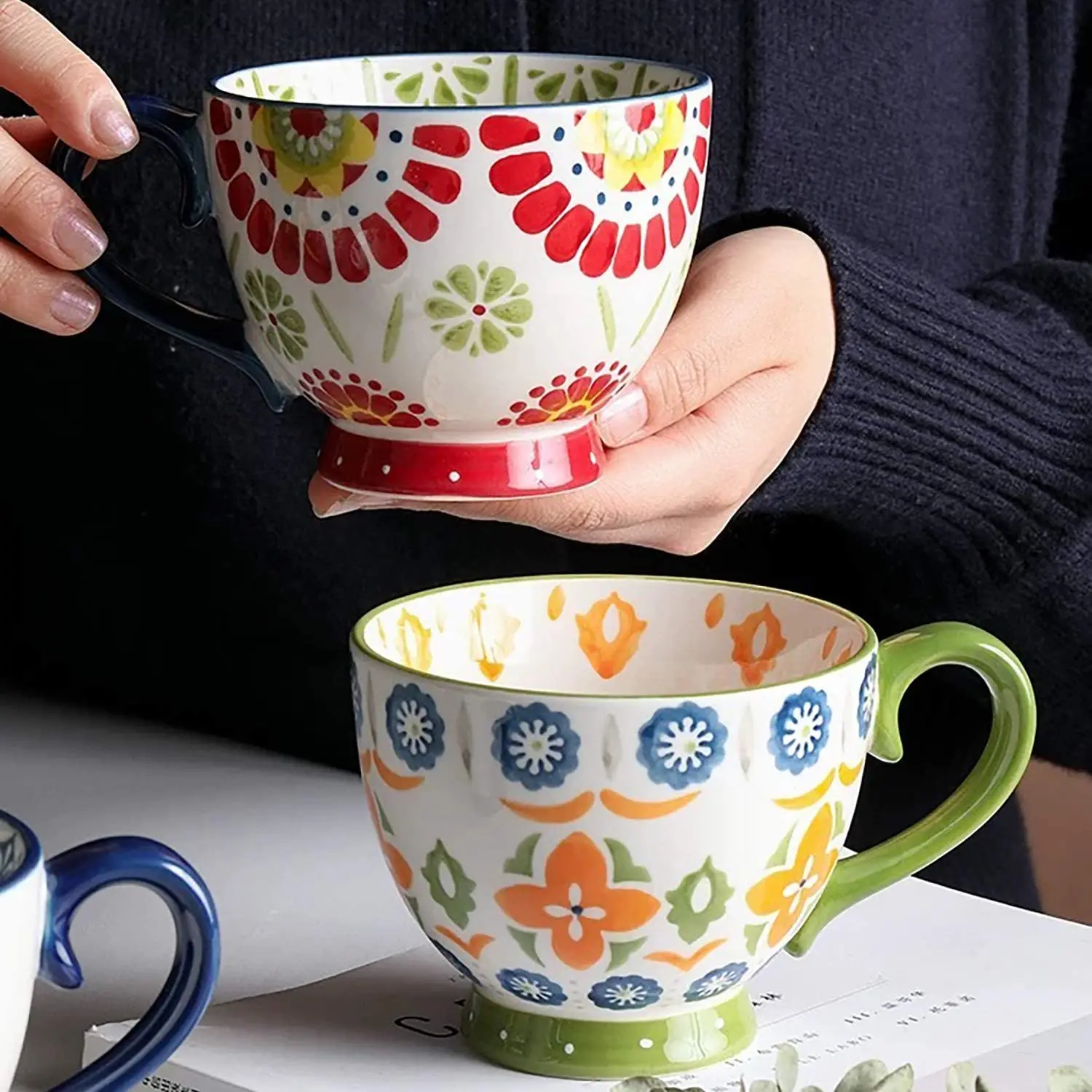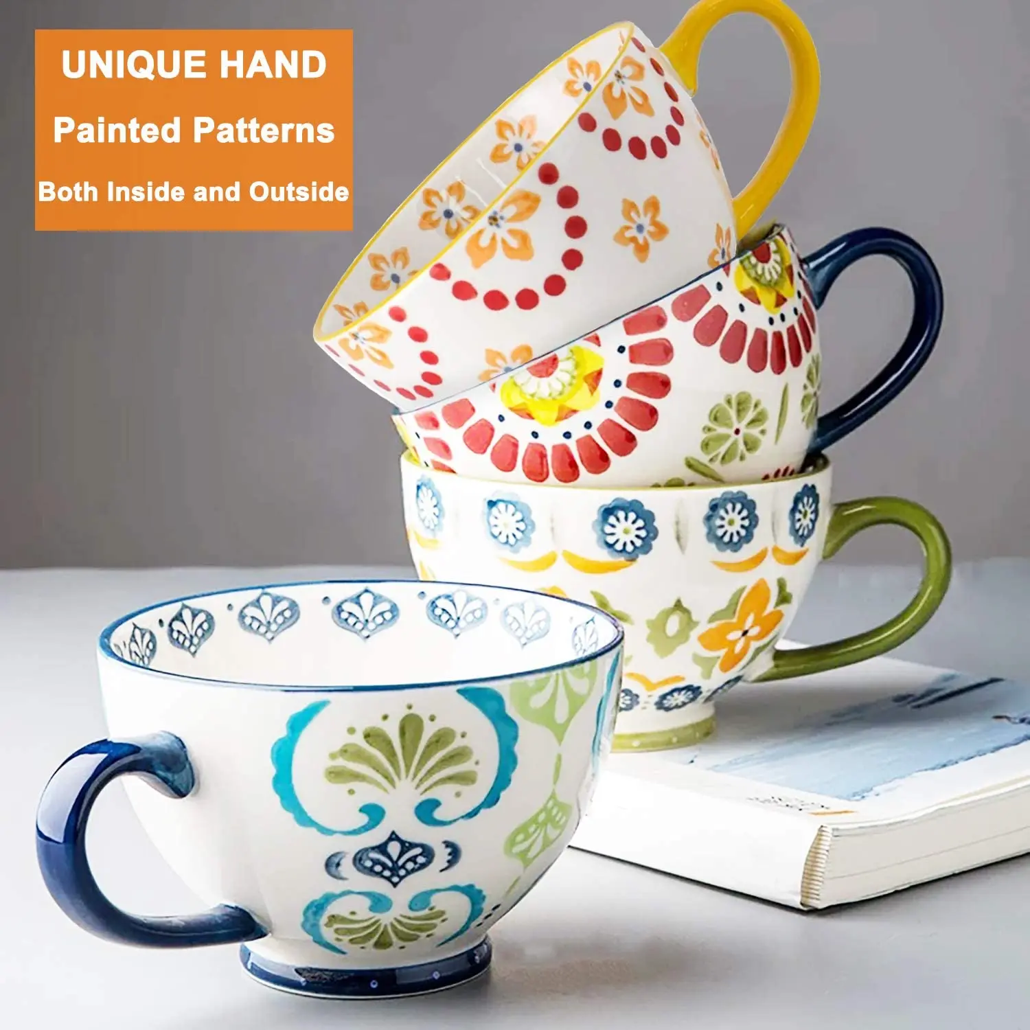 Nagy Kávé Bögre, Jumbo Porcelán Leves Leves Bögre Kézzel Készített Művészeti Bögre Cappuccino, Latte, Leves, Gabonafélék, 4 Bögre Fagylaltkészlet