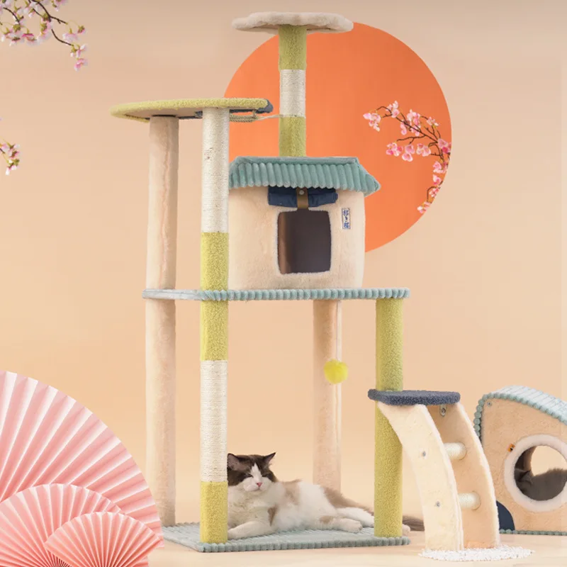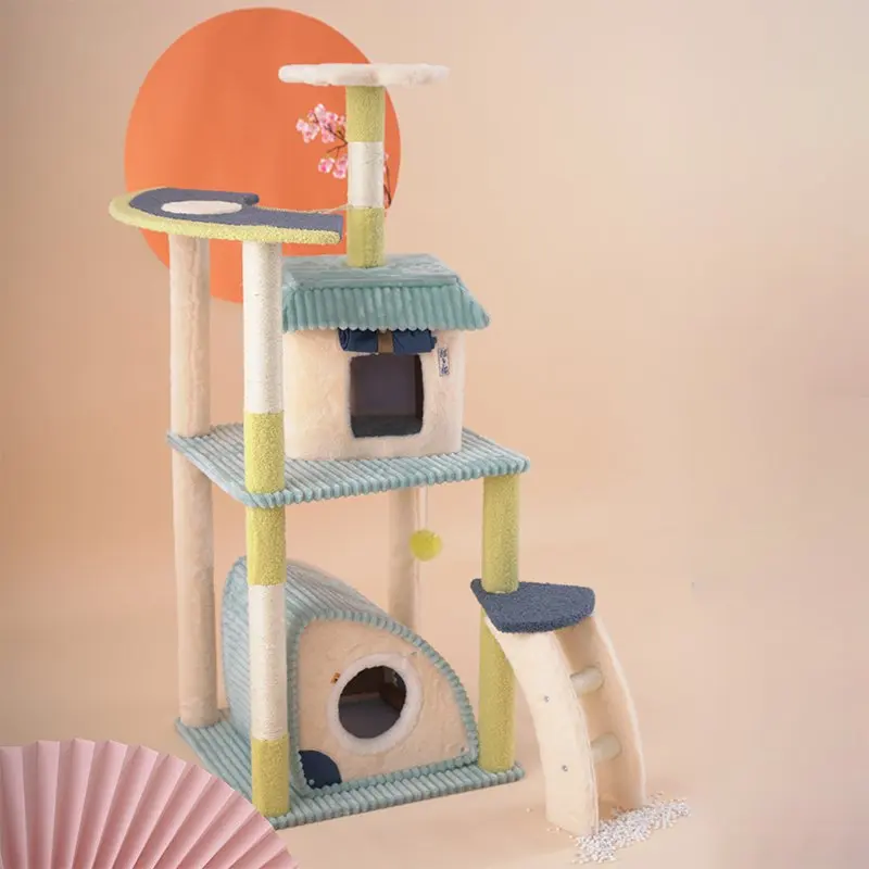 Nagy Macskás Mászás Keret Fa Macska Ágy Fészek Létra Ugró Platform Szizális Karcolás Utáni Macska Villa Kisállat -Bútor Játékkomplexum
