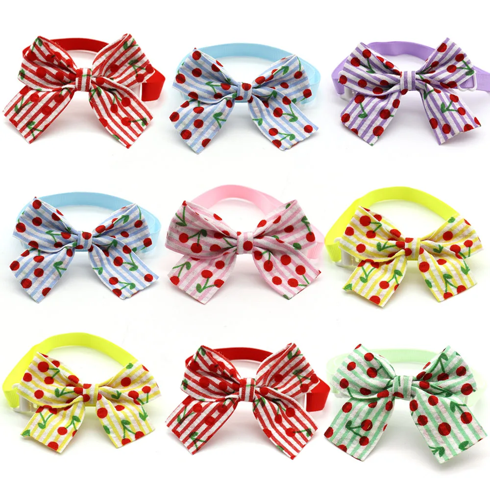 Nagykereskedelem 50/100 Pcs Aranyos Cseresznye Stílusú Kutya Csokornyakkendő Ömlesztett Háziállat -Ápolási Készletek Gallér Nyakkendő Kis Kutyákhoz Macska Kiegészítők Nyakkendő