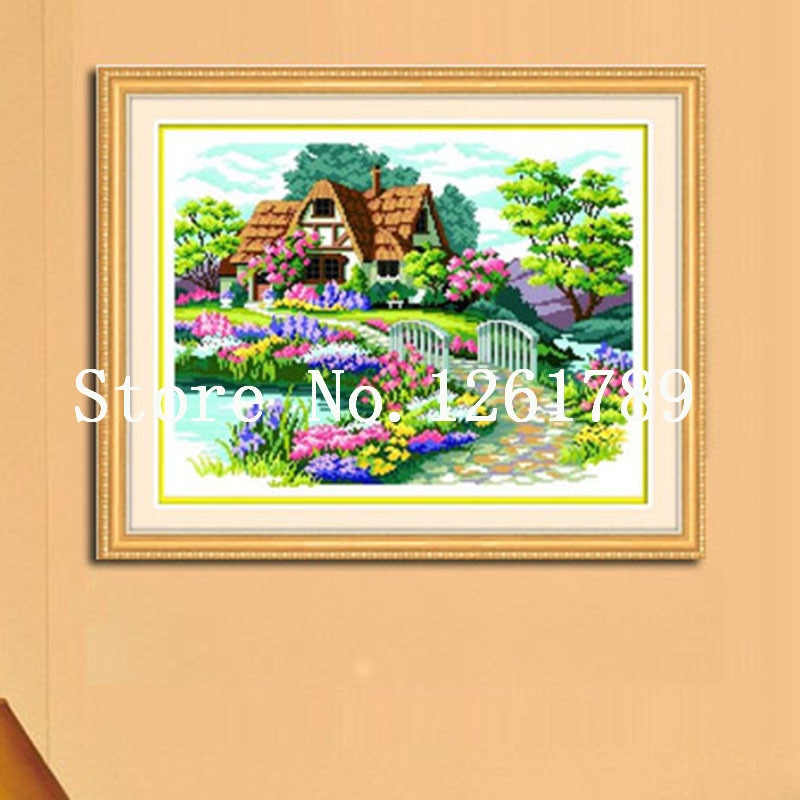 Nagykereskedelmi Kézimunka 100% Pontos Nyomtatott Barkács Kereszt Öltés Készlet Hímzés Fal Dekoráció Gyönyörű Házikert