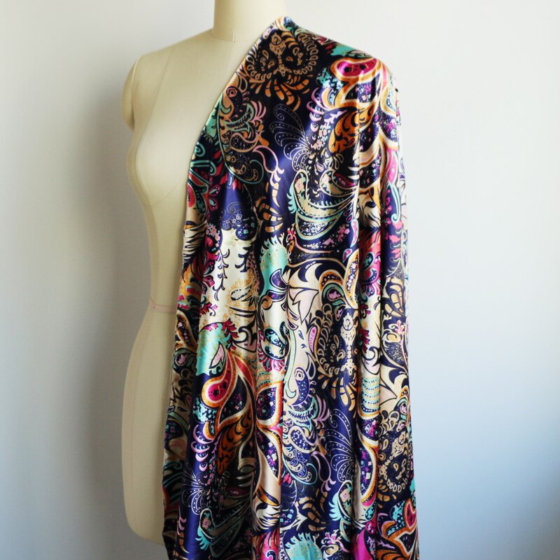 Nagykereskedelmi Puha Spandex Szatén Szövet Varráshoz Szüreti Virágok Utánozzák Selyem Anyag Rugalmas Stretch Nyomtatás