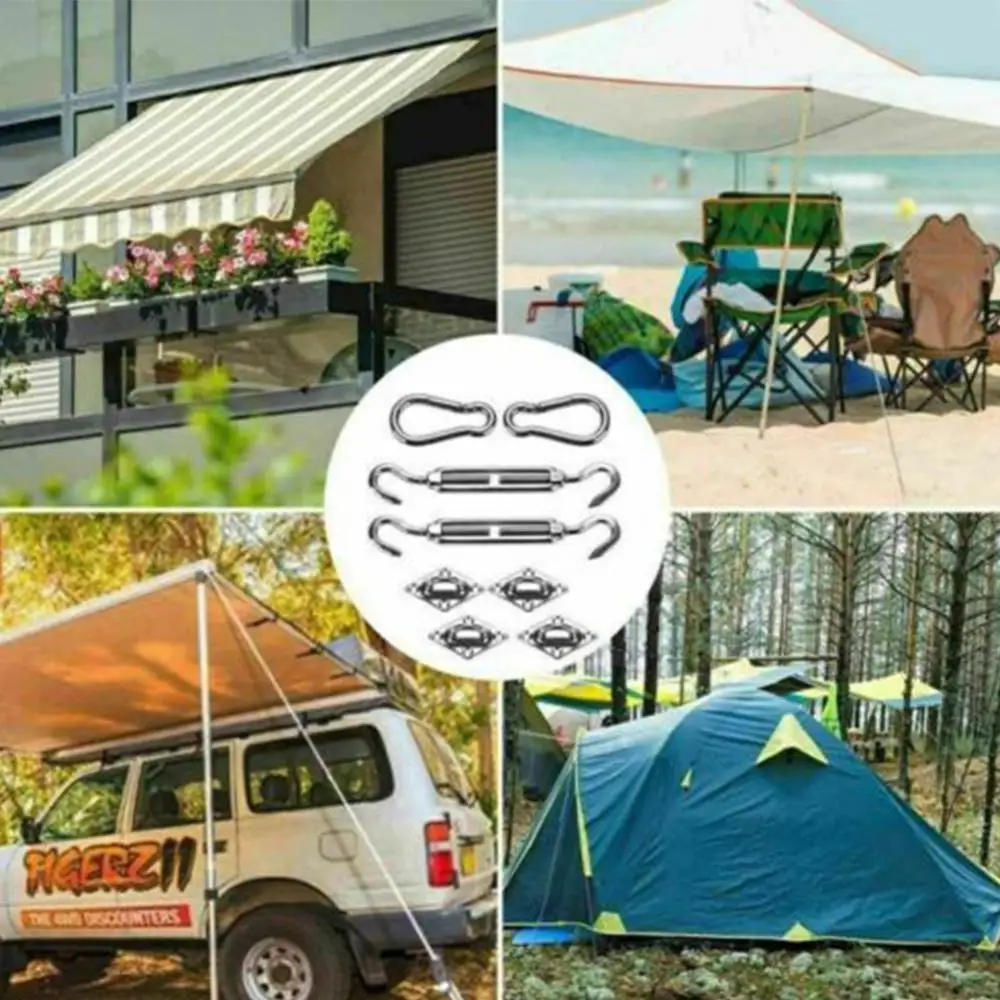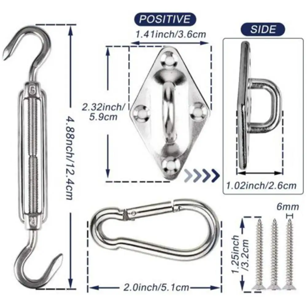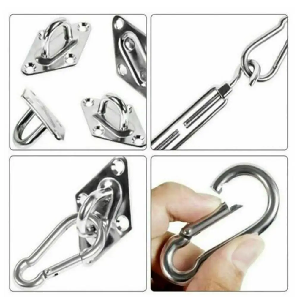 Nap Árnyék Vitorla Előtető Tartozék 24Db/Szett 304 Rozsdamentes Acél Kültéri Napellenző Hardverkészlet Turnbuckle Pad Eye Hook Csavarok