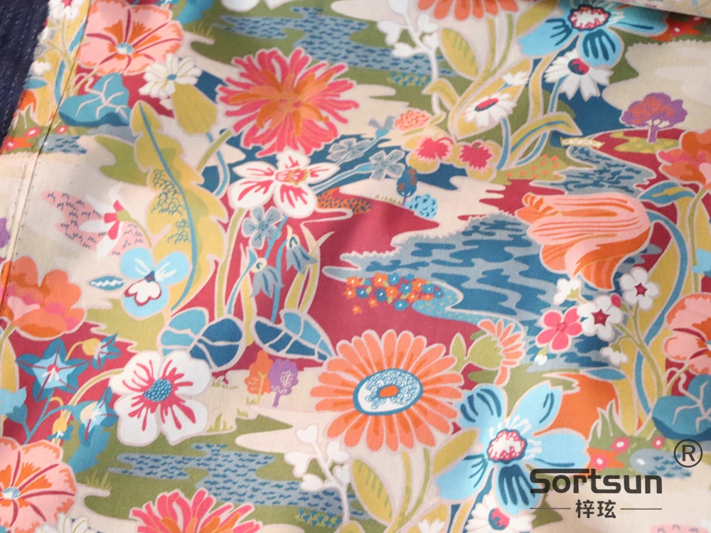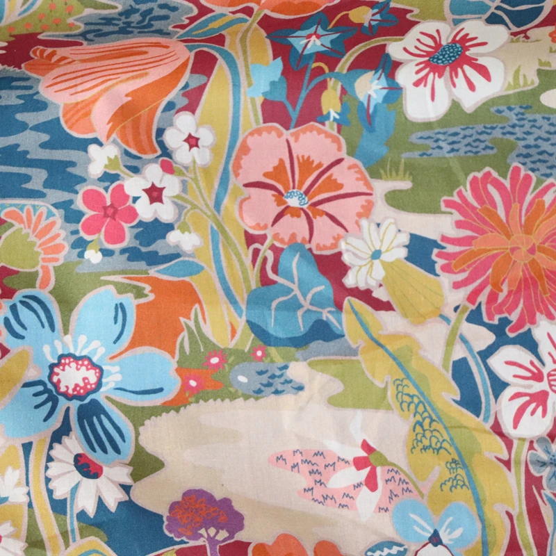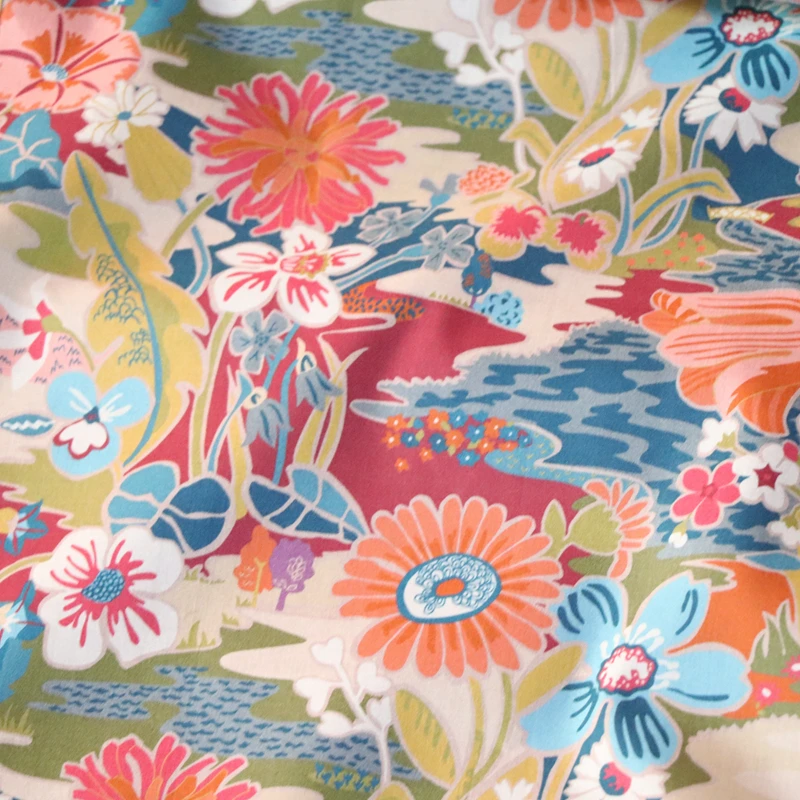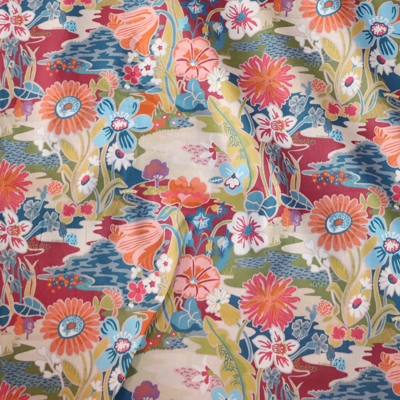 Napsütés Vörös Virágos Poplin Textil Anyagtervező Ruházati Ruhákhoz Szoknya Nyomtatott Szabadság Szövet 100% Pamut Tissus 80 -As Évek