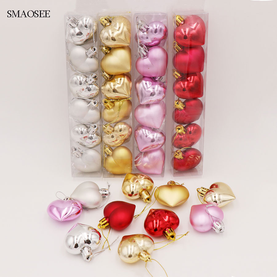 Natal 6Db / Csomag Szív Karácsonyi Medál Gömbök Karácsonyfa Díszítés Xmas Party Díszek 2021 Otthoni