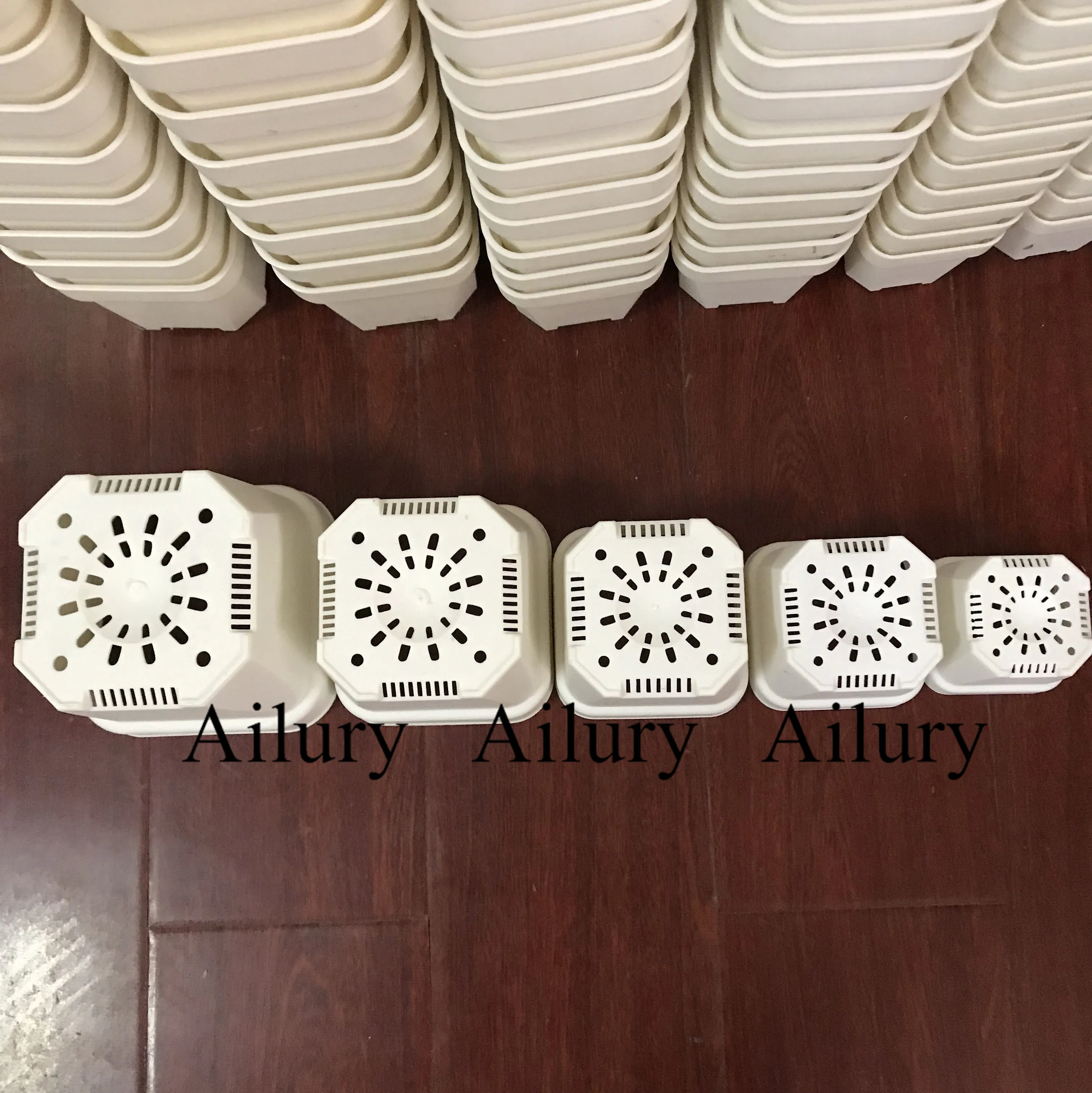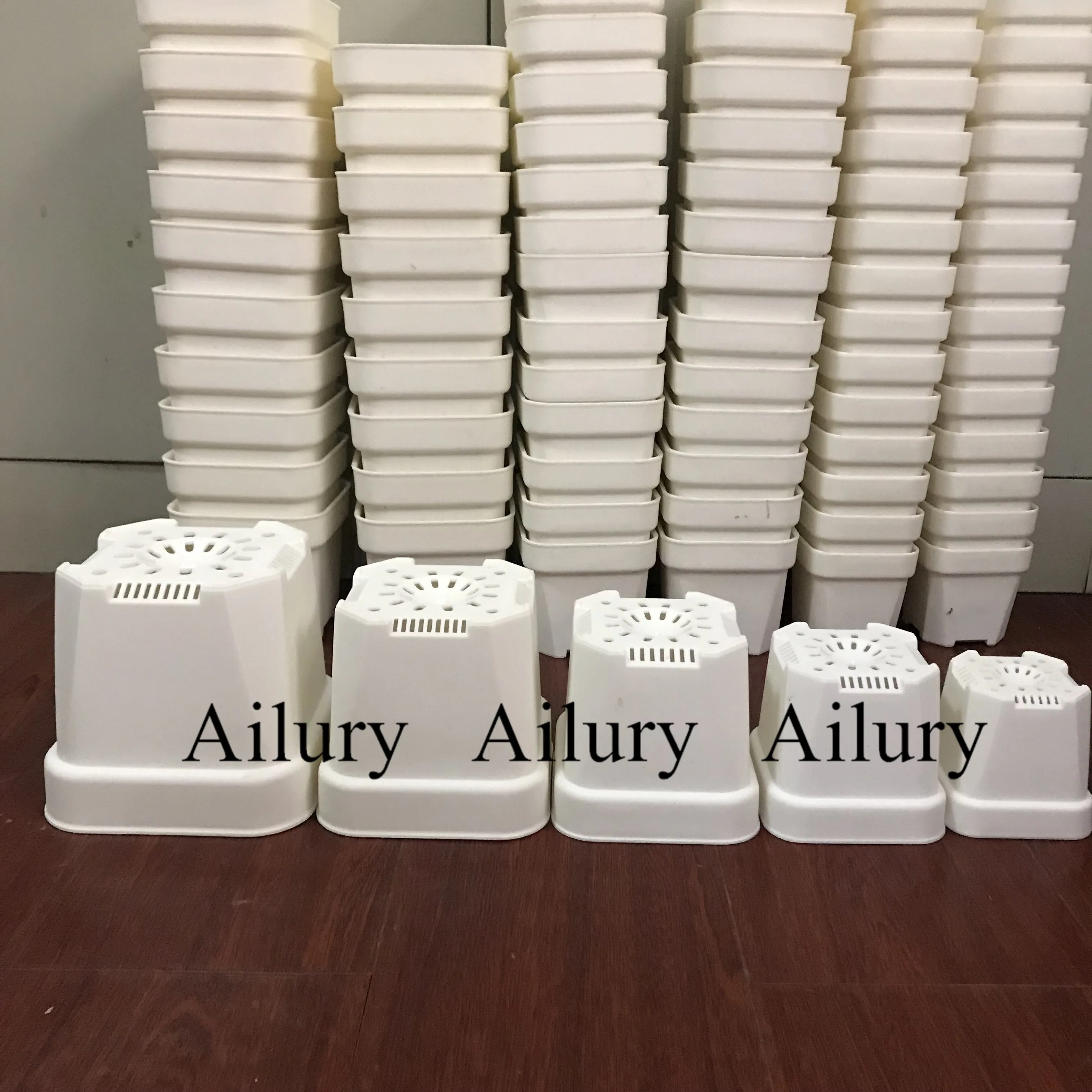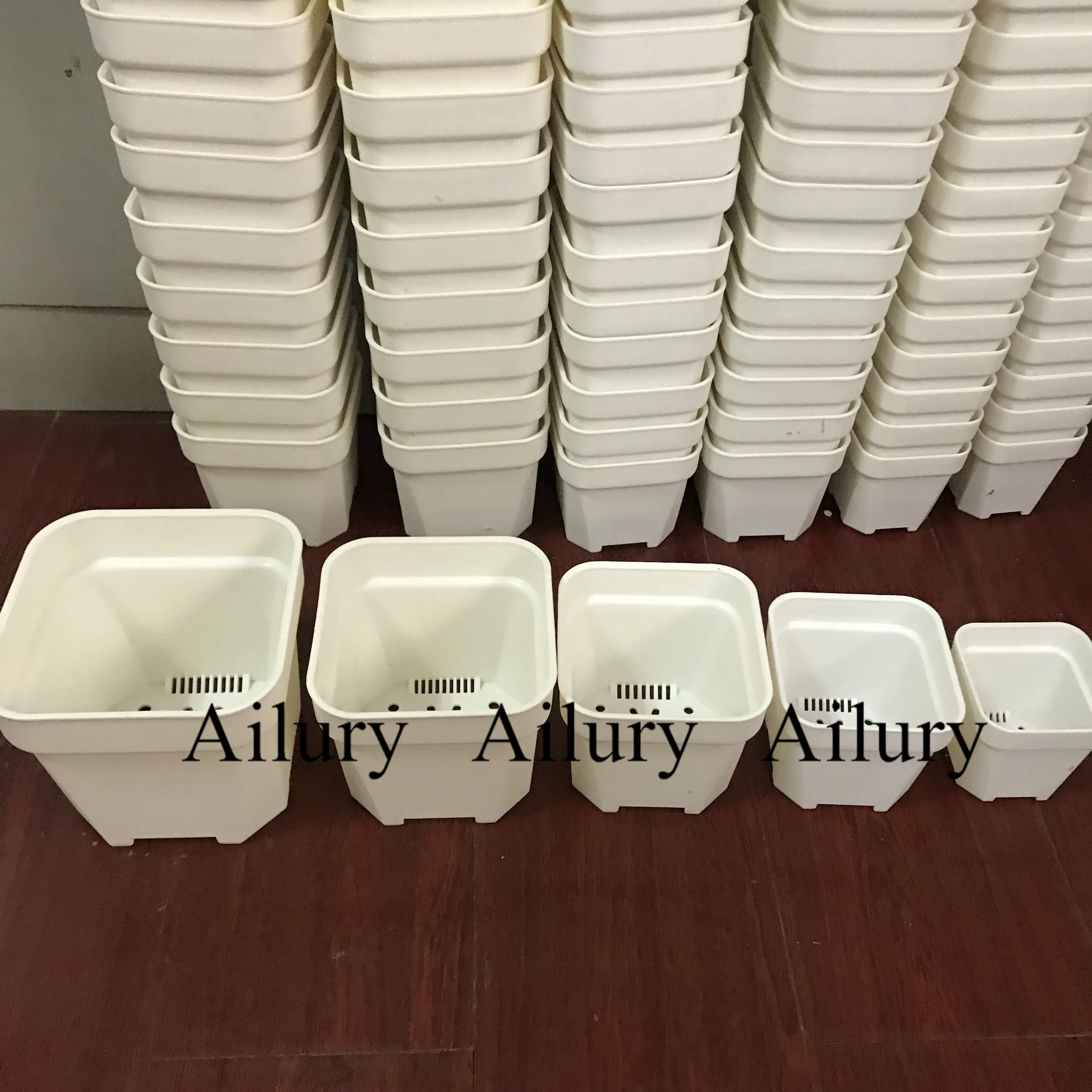 Négyzet Alakú Műanyag Kerek Vastag Zamatos Kis Fekete Növényi Virágcserepek, Fehér Zöld Ültetvények Cserepes Kert Bonsai Tartály