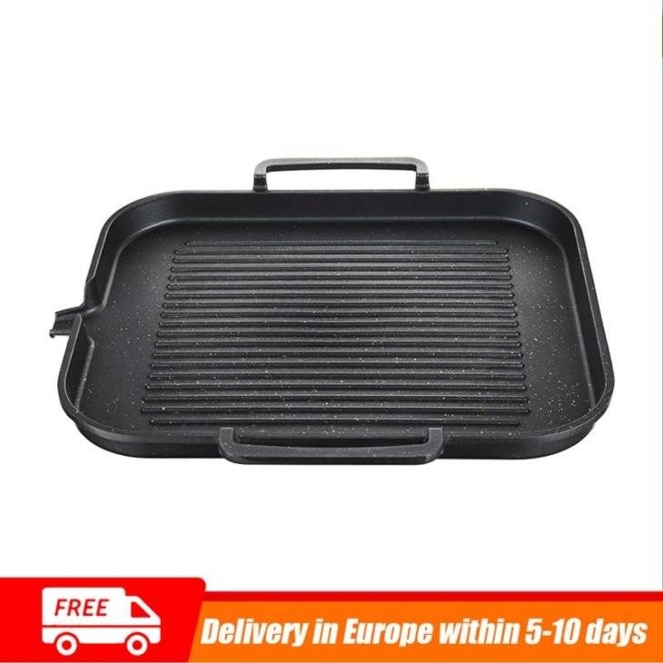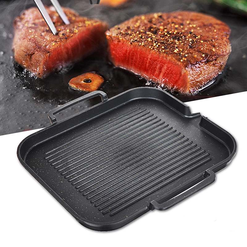 Nem Tapadó Főző Grill Serpenyő Öntöttvas Reverzibilis Serpenyő Bbq Serpenyő Nagy Forró Indukciós Főzés Fogantyúkkal