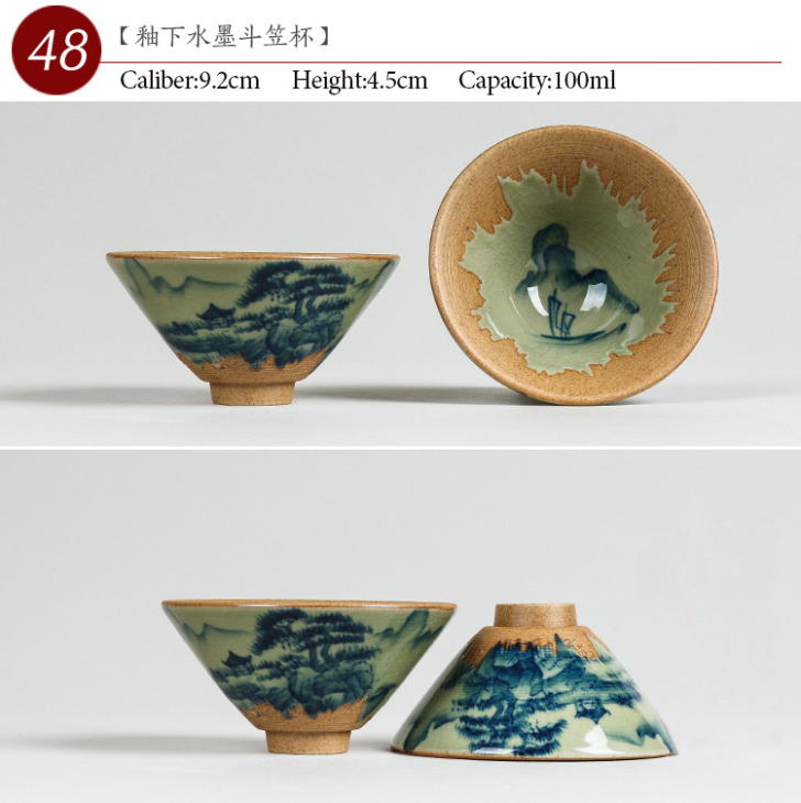 No.048 Kínai Kiváló Minőségű Kerámia Tea Csésze 100Ml Kung Fu Tea Szett Japán Stílusú Kézzel Készített Festett Teás Teás Tea Tál