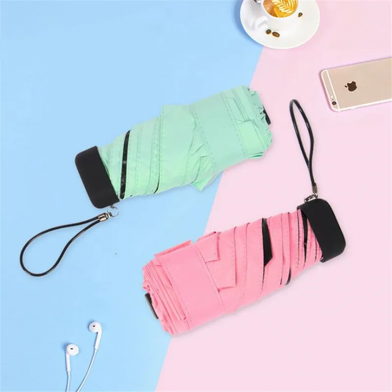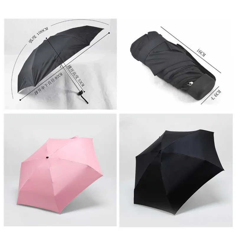 Nők Mini Zseb Esernyő Hordozható Lapos Esős Esernyők 5 Hajtogatott Nap Eső Könnyű Unisex Lányok Utazó Esőfelszerelés