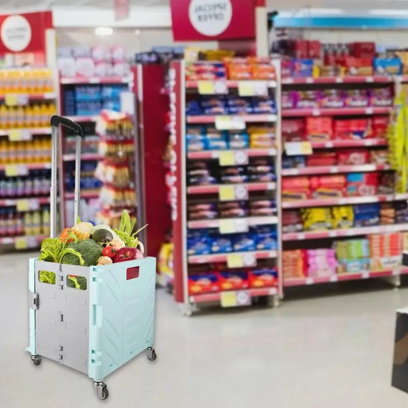 Összecsillapítható Gördülő Kosár Összecsukható Bevásárló Kocsi Nagy Teherbírású Kézi Távcsövű Fogantyúval Az Utazási Vásárláshoz
