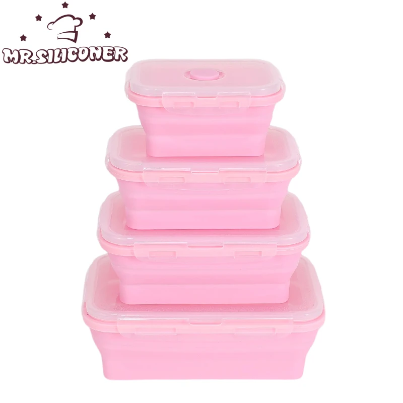Összecsukható Élelmiszer -Tárolóedény Fedéllel Hordozható Szilikon Ételtartályok Mikrohullámú Fagyasztó Biztonságos Ebéddoboz Bento Doboz