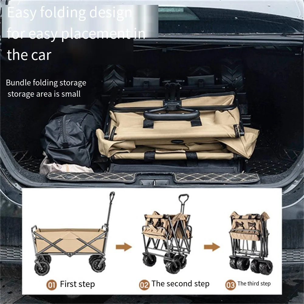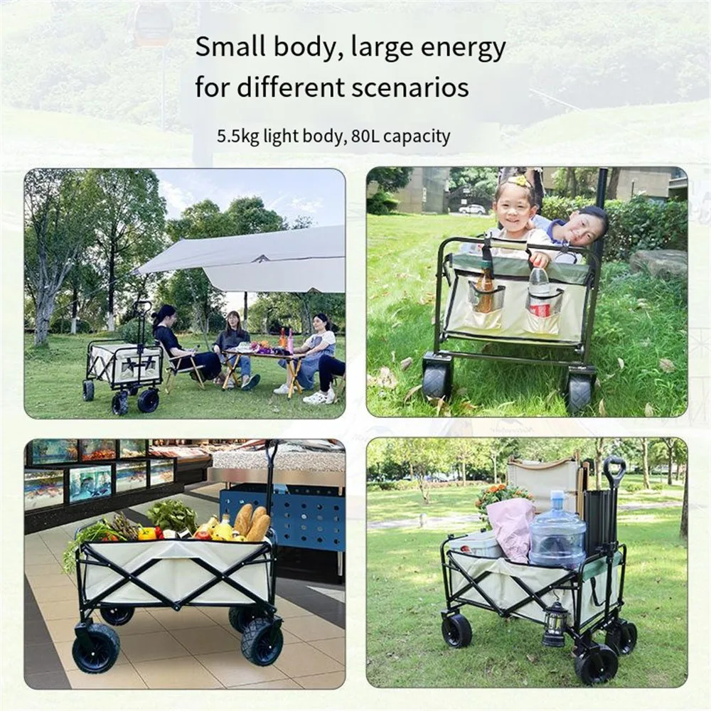 Összecsukható Kosár Kocsi Hordozható 160L Nagy Kapacitású Multifunkciós Húzógép Kültéri Kemping Asztal Halászati Bevásárló