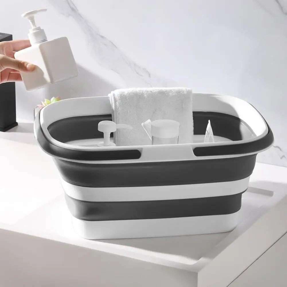 Összecsukható Vödör Fehér Hajtogató Többcélú Térmegtakarítás Nagyszerűen Tárolható Kád