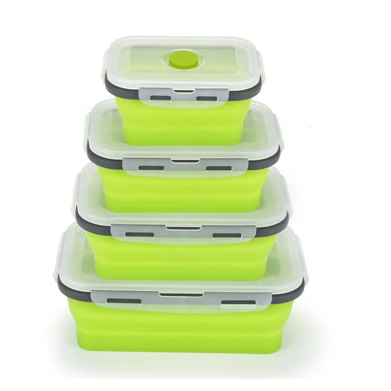 Összeomlható Élelmiszer -Tárolóedények – 4 Csomag Szilikon Bento Ebéddobozok, Újrahasznosítható Bpa- És Mikrohullámú Biztonságos Ebédedények