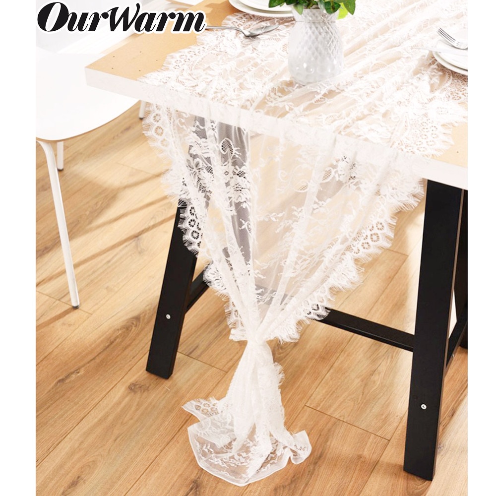 Ourwarm White Csipke Asztal Futó Szék Szárny Virágos Asztali Futók Modern Boho Esküvői Dekoráció Otthoni Szálloda Születésnapi Party