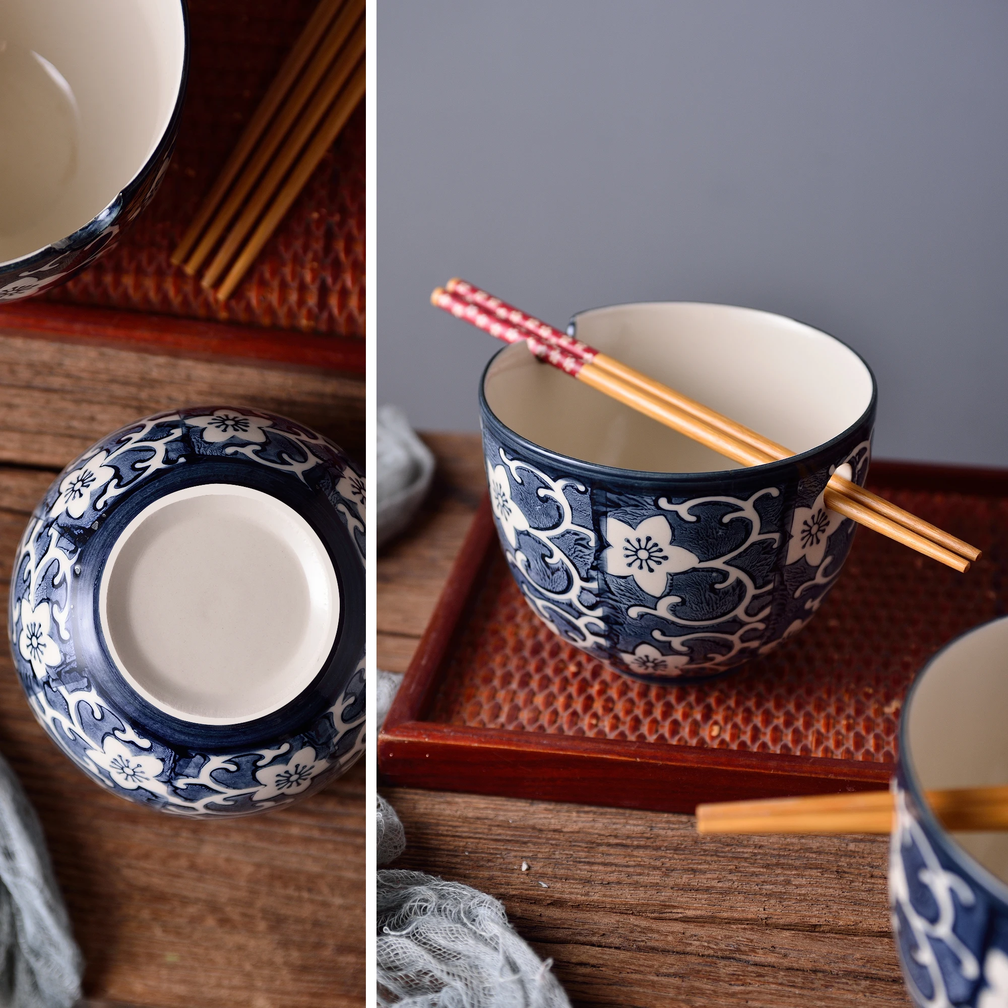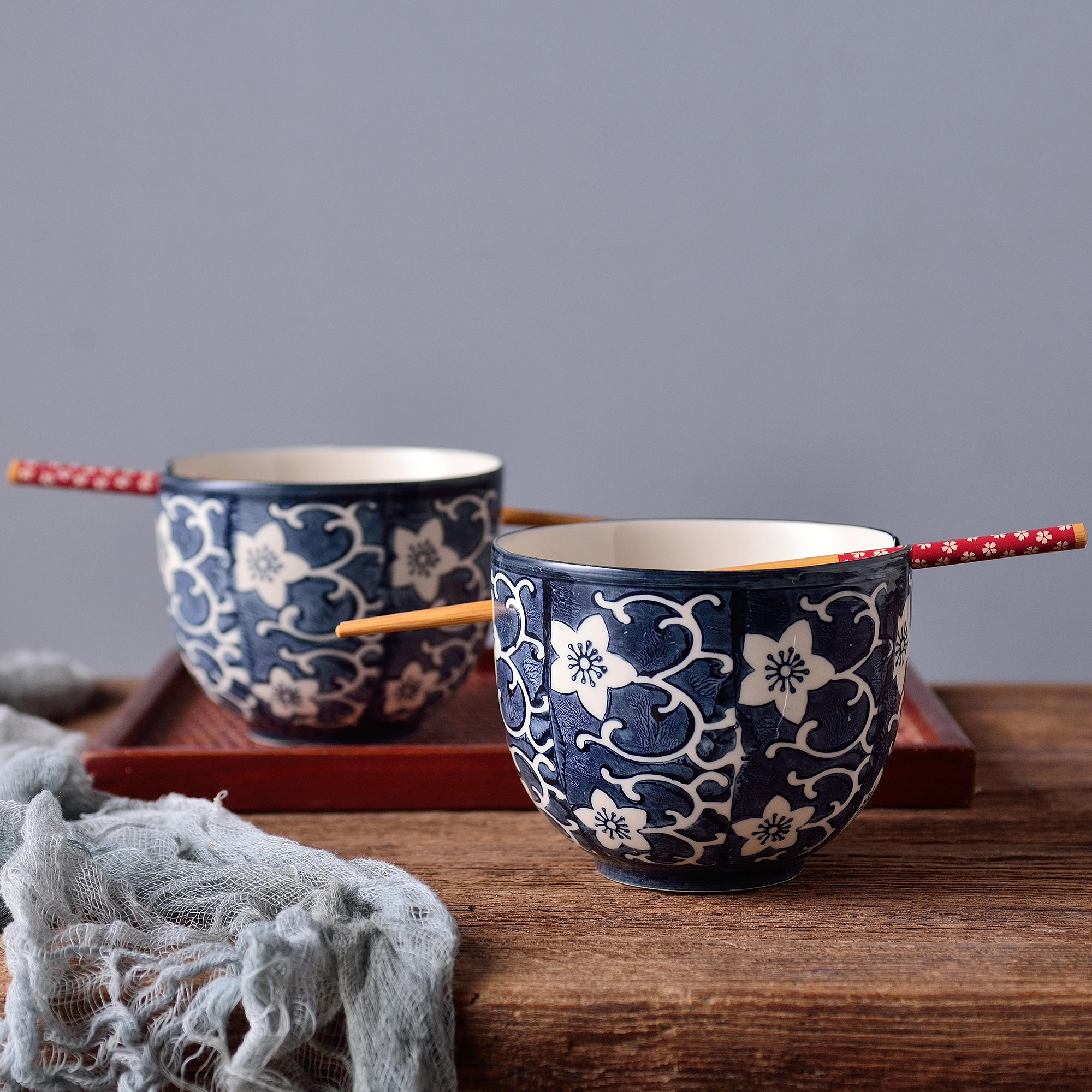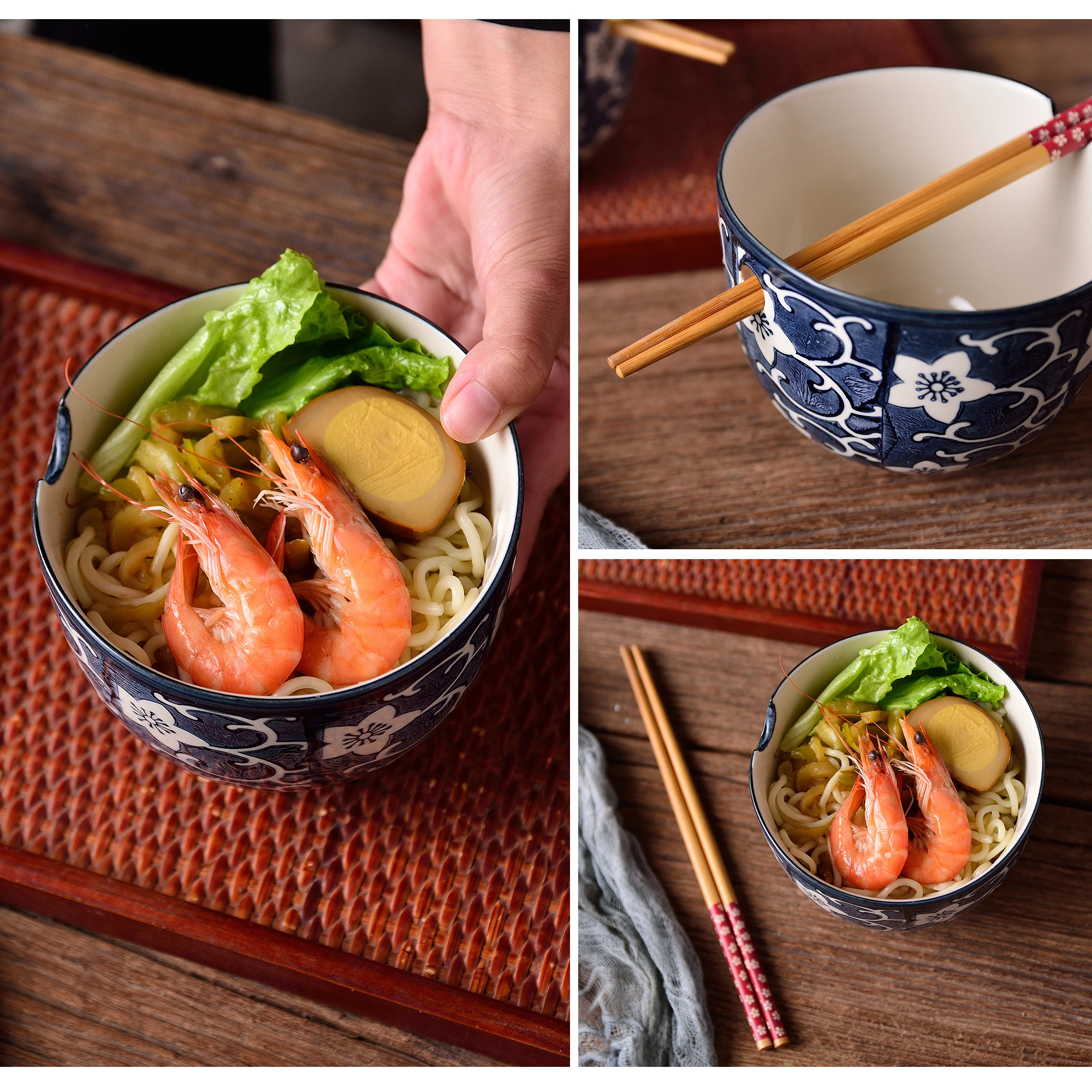 Panbado 2 Darab Japán Stílusú Speciális Kialakítás 470 Ml Porcelán Tál Készlet Tészta/Ramen/Rizs Tál 2*Tálral, Bambuszpálcikával