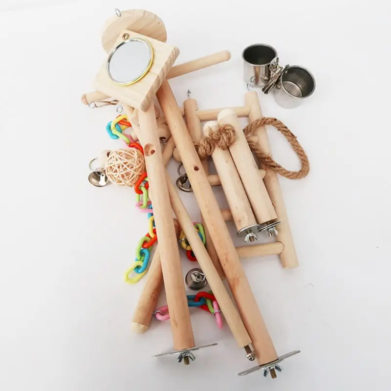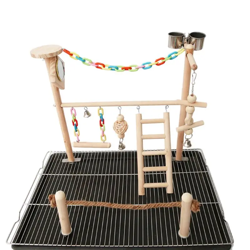 Parrot Madár Tükör Játék Állvány Kakasjáték Játszótér Fa Sügér Tornaterem Létra Feeder Poharak Lengő Hegymászó Játékok